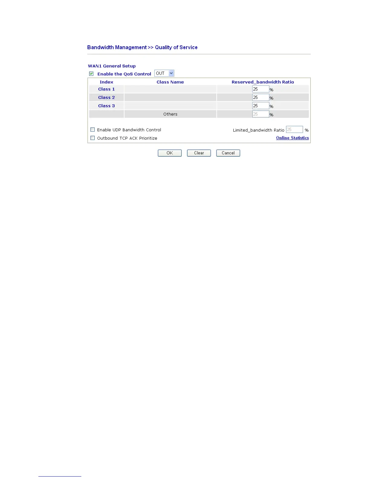 WAN Outbound Bandwidth It allows you to set the connecting rate of data output for