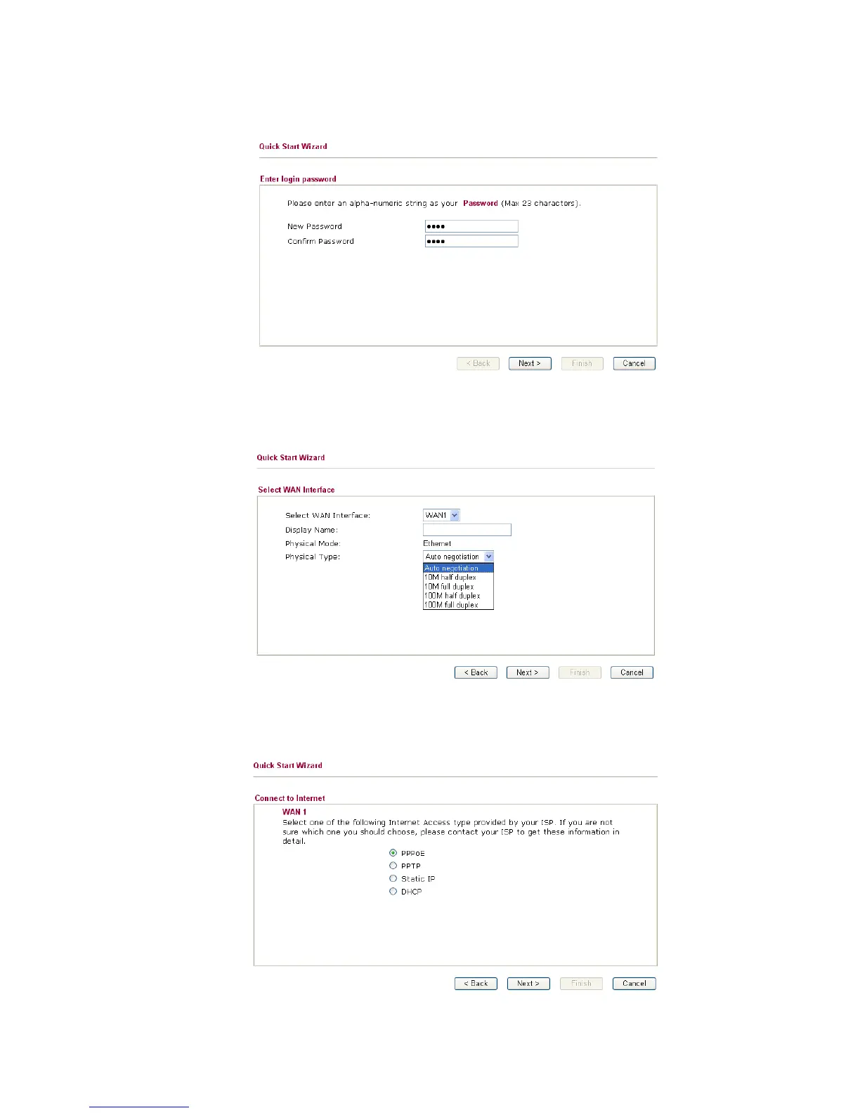 Choose Auto negotiation as the physical type for your router. Then click Next for