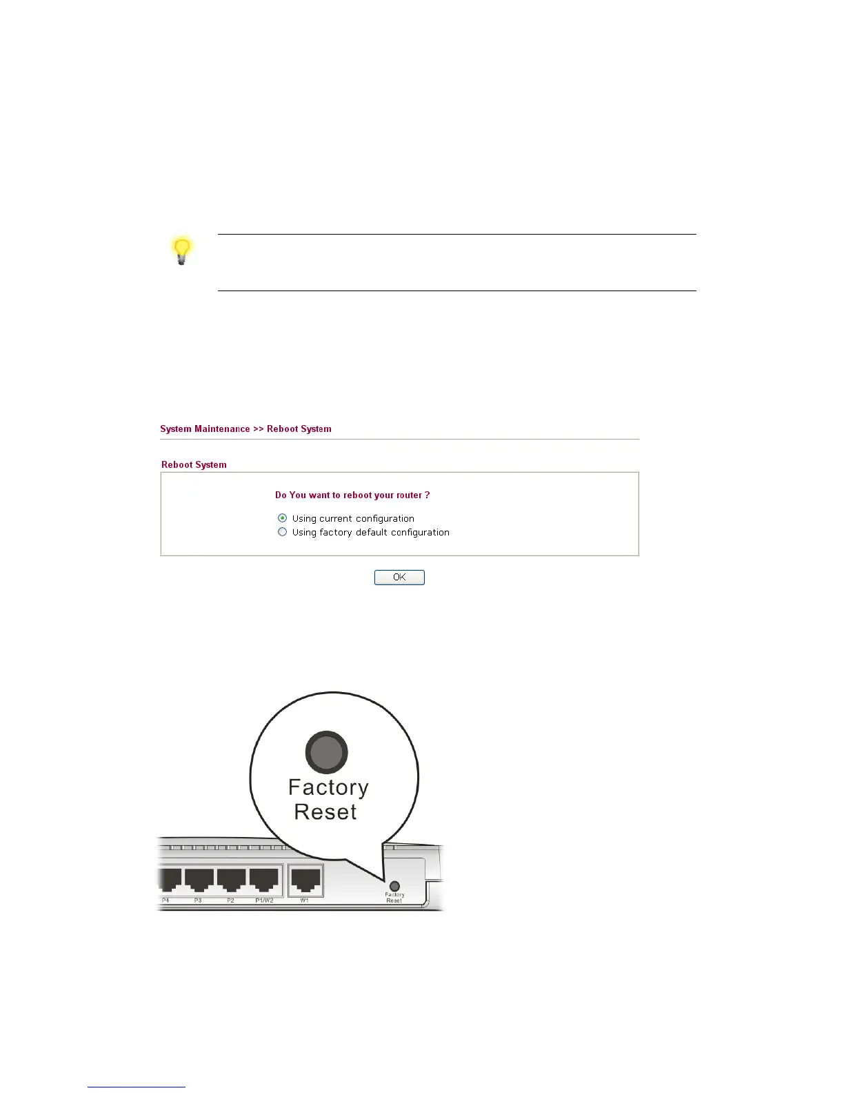 Go to System Maintenance and choose Reboot System on the web page. The following