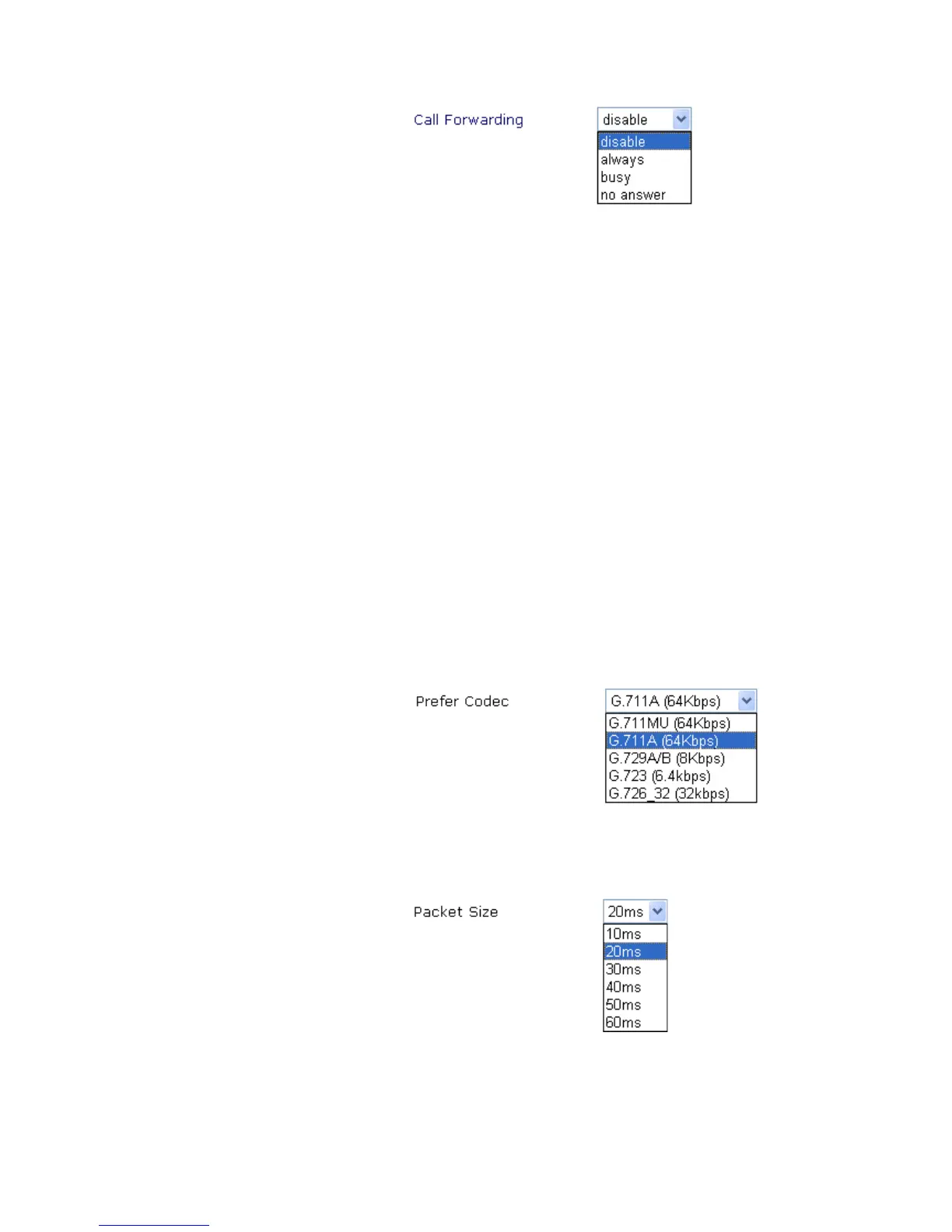 Prefer Codec Select one of five codecs as the default for your VoIP calls.
