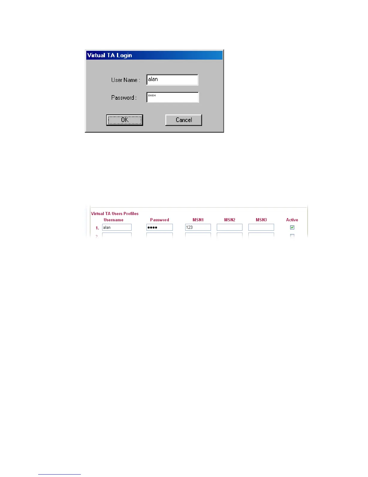 Type the specified MSN number in the CAPI-based software. When the Virtual TA server