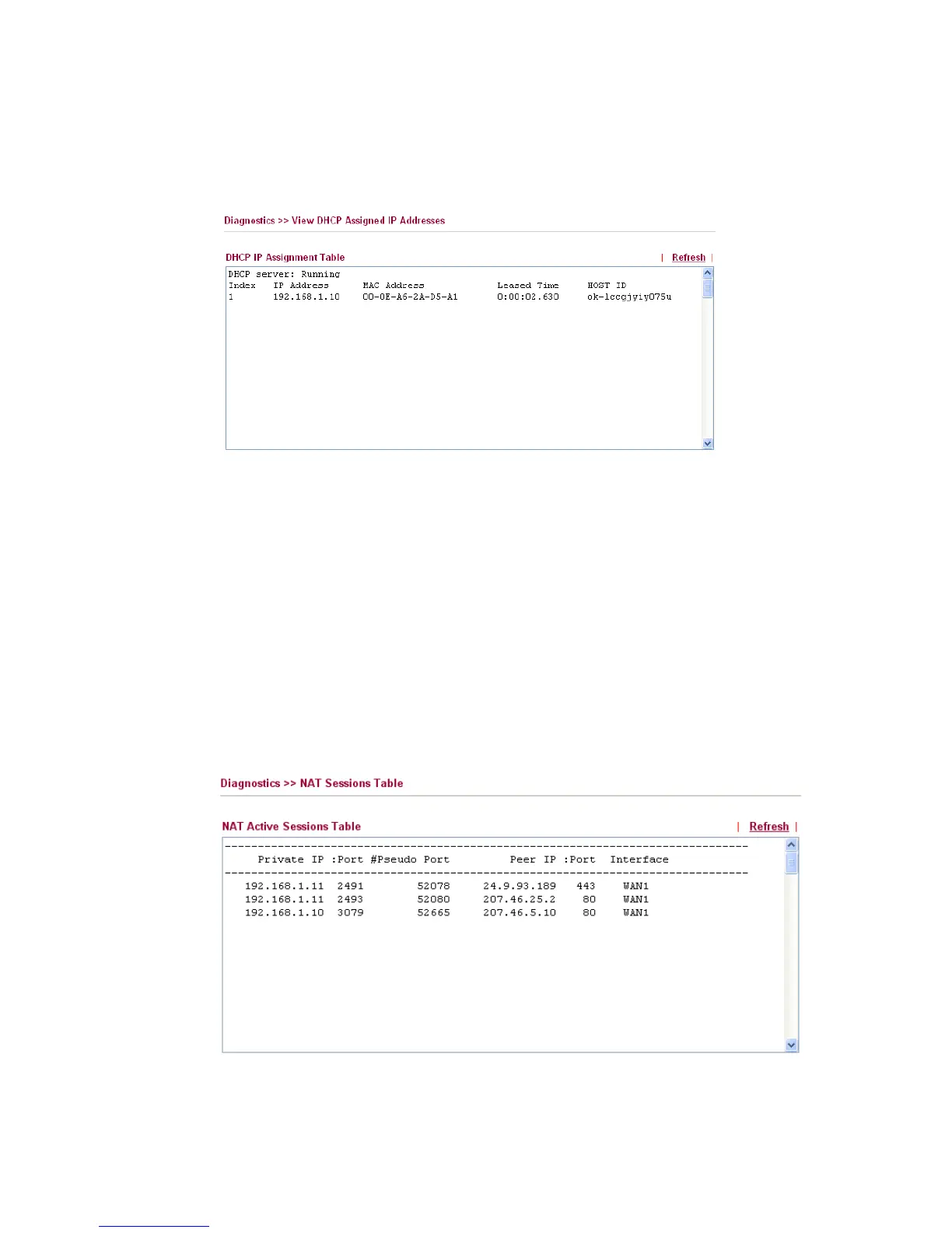 Click Diagnostics and click NAT Sessions Table to open the setup page.
