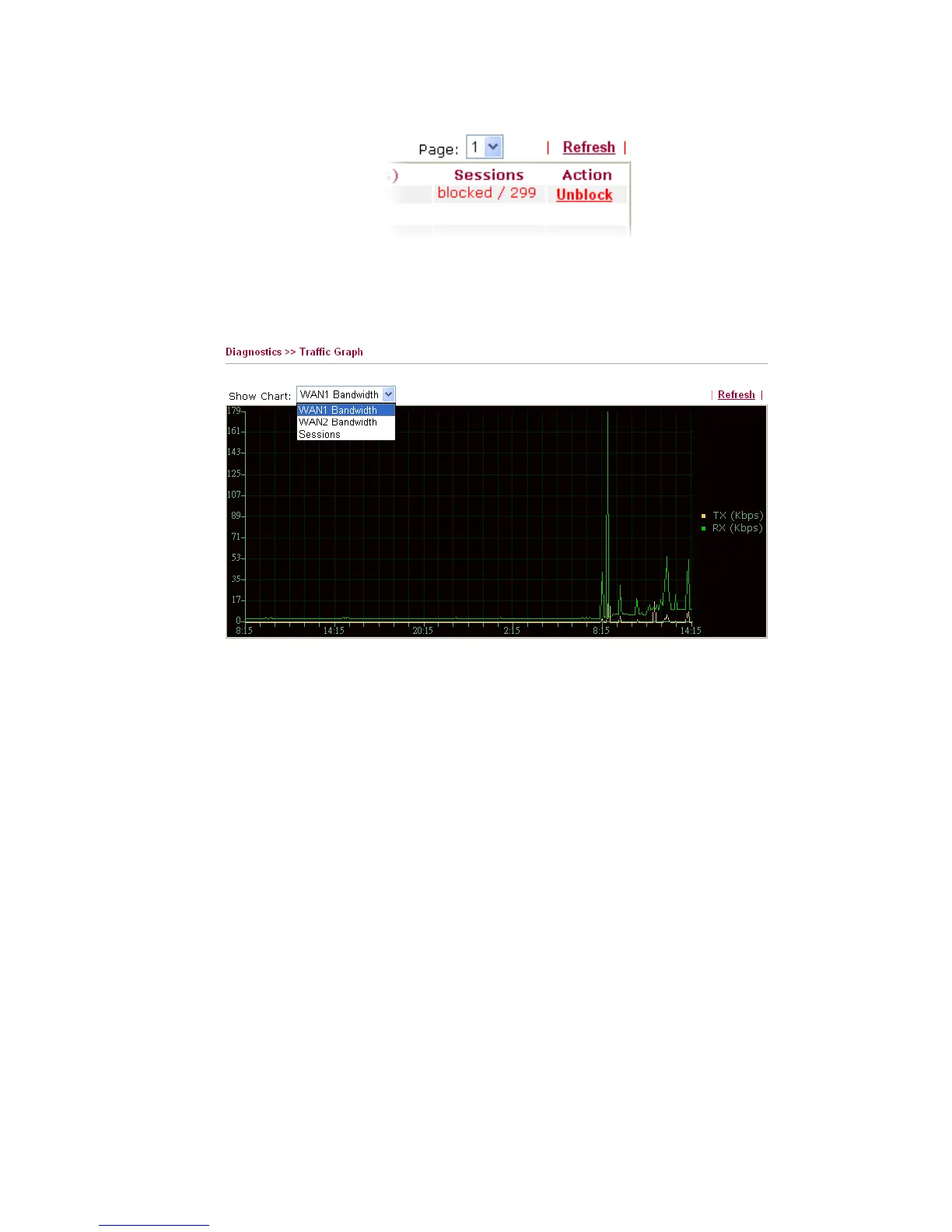 Click Diagnostics and click Traffic Graph to pen the web page. Choose WAN1
