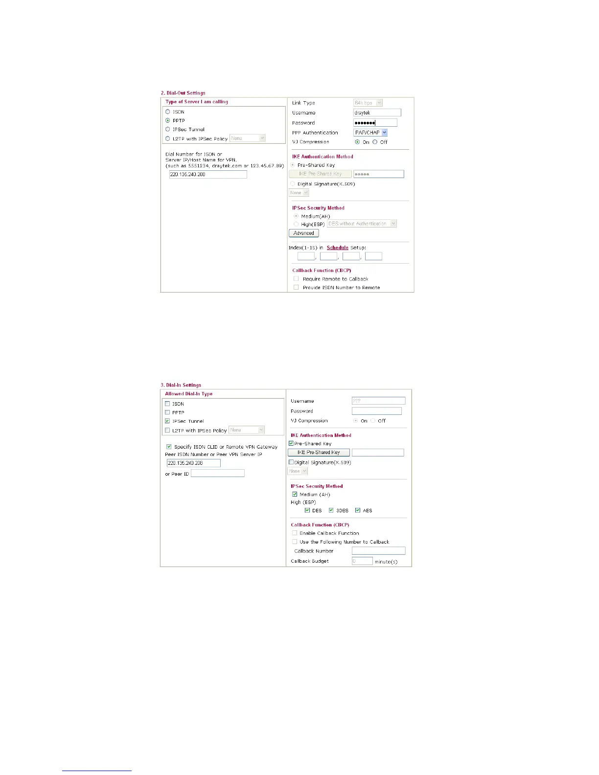 Address, IKE Authentication Method and IPSec Security Method for this Dial-In