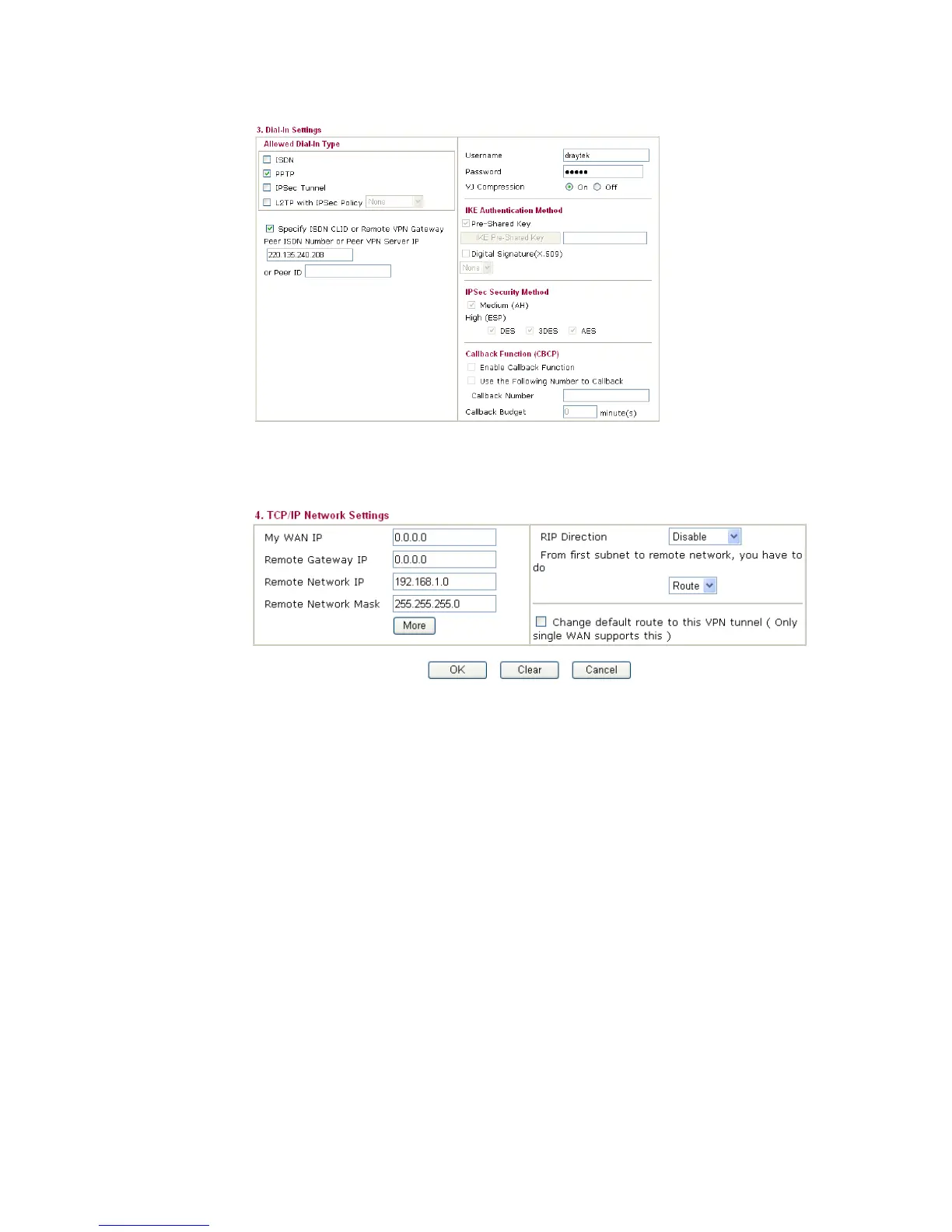 7. At last, set the remote network IP/subnet in TCP/IP Network Settings so that Router