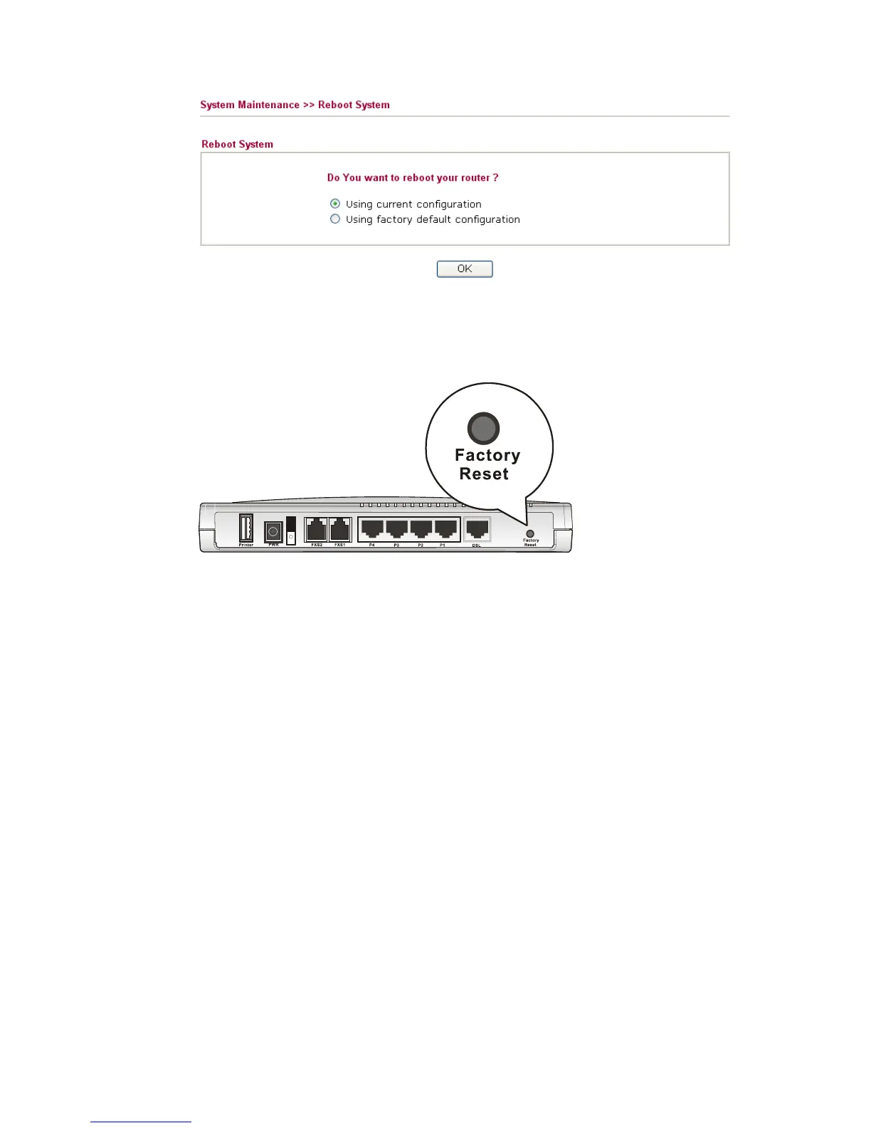 While the router is running (ACT LED blinking), press the Factory Reset button and hold