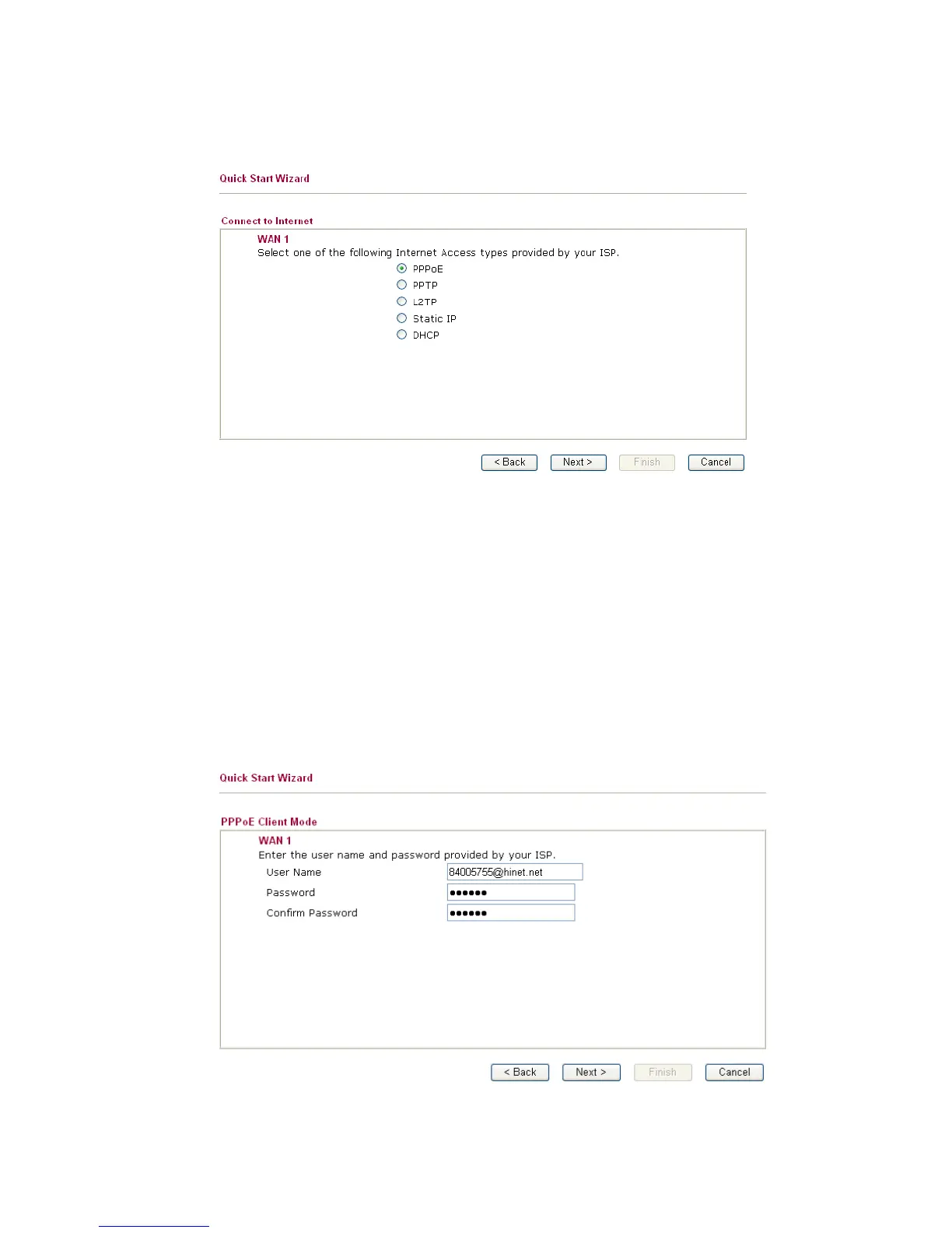 the ISP provides you PPPoE interface. Then click Next for next step.