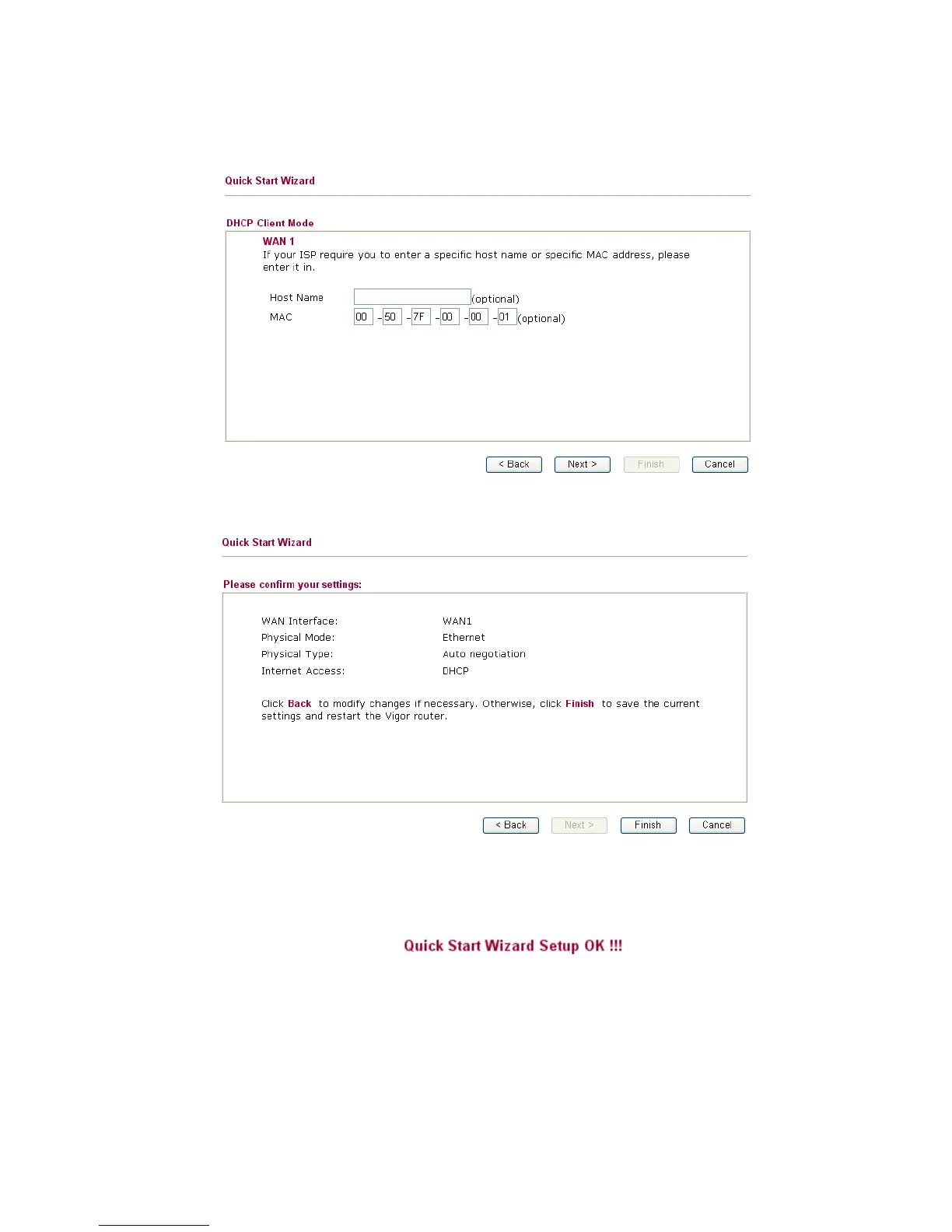 Click Finish. A page of Quick Start Wizard Setup OK!!! will appear. Then, the system