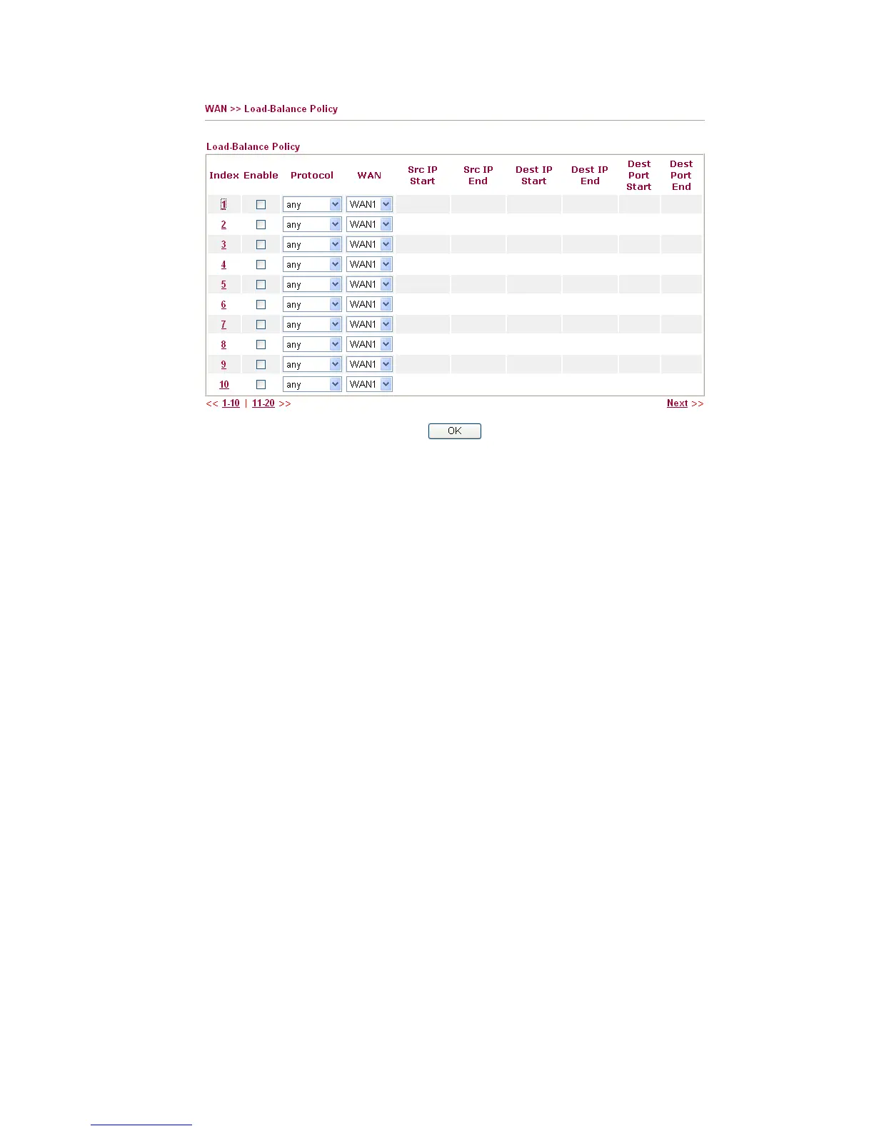 Click Index 1 to access into the following page for configuring load-balance policy.
