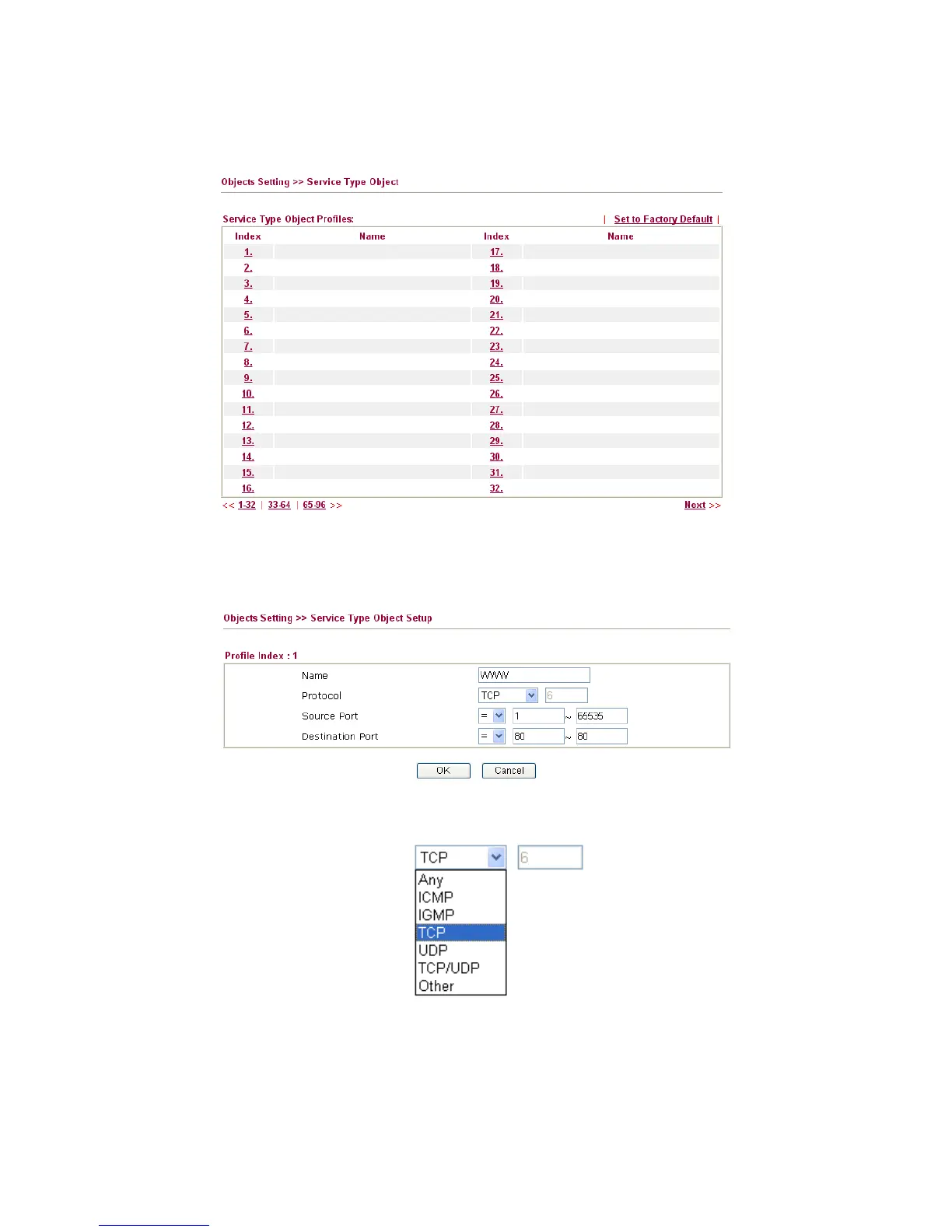You can set up to 96 sets of Service Type Objects with different conditions.