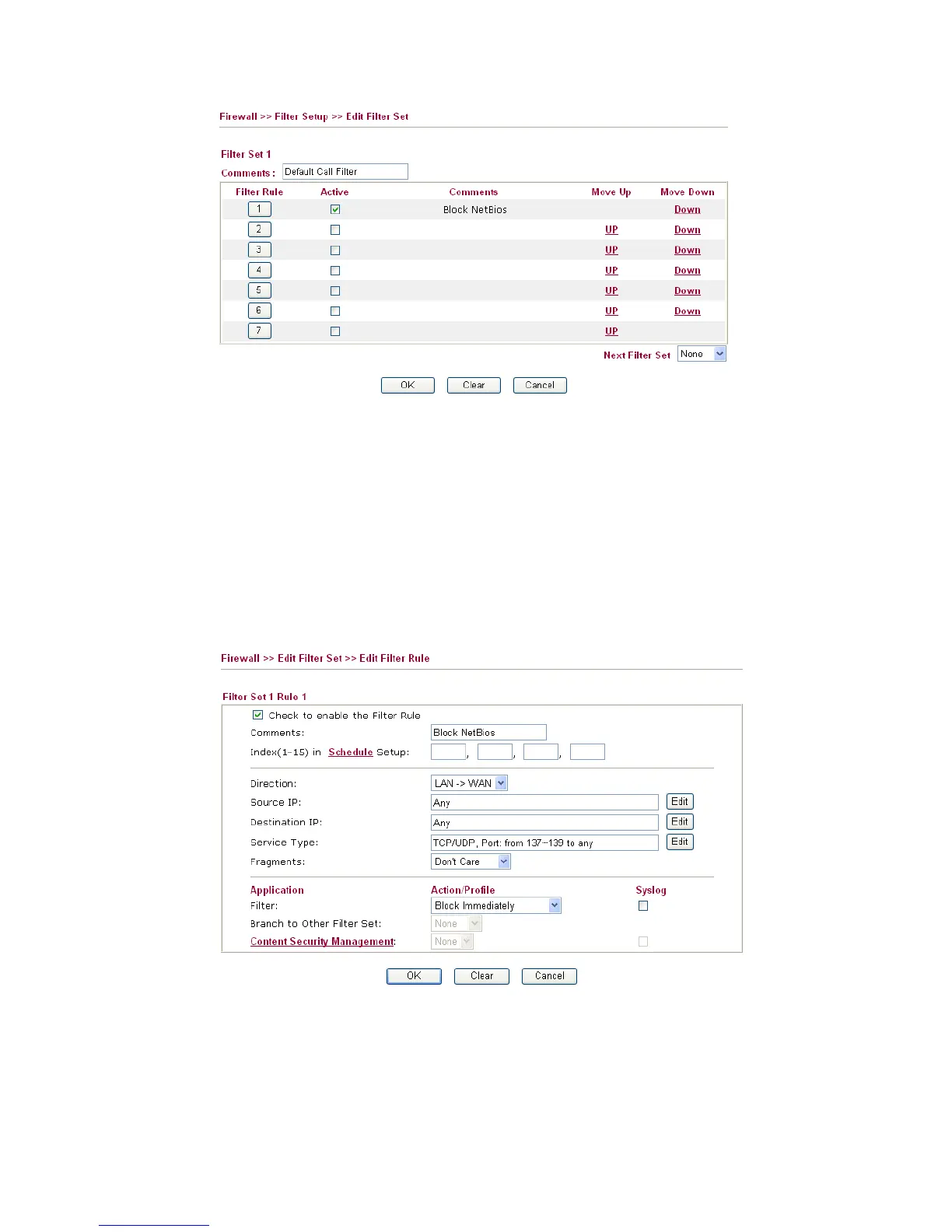 Move Up/Down Use Up or Down link to move the order of the filter rules.