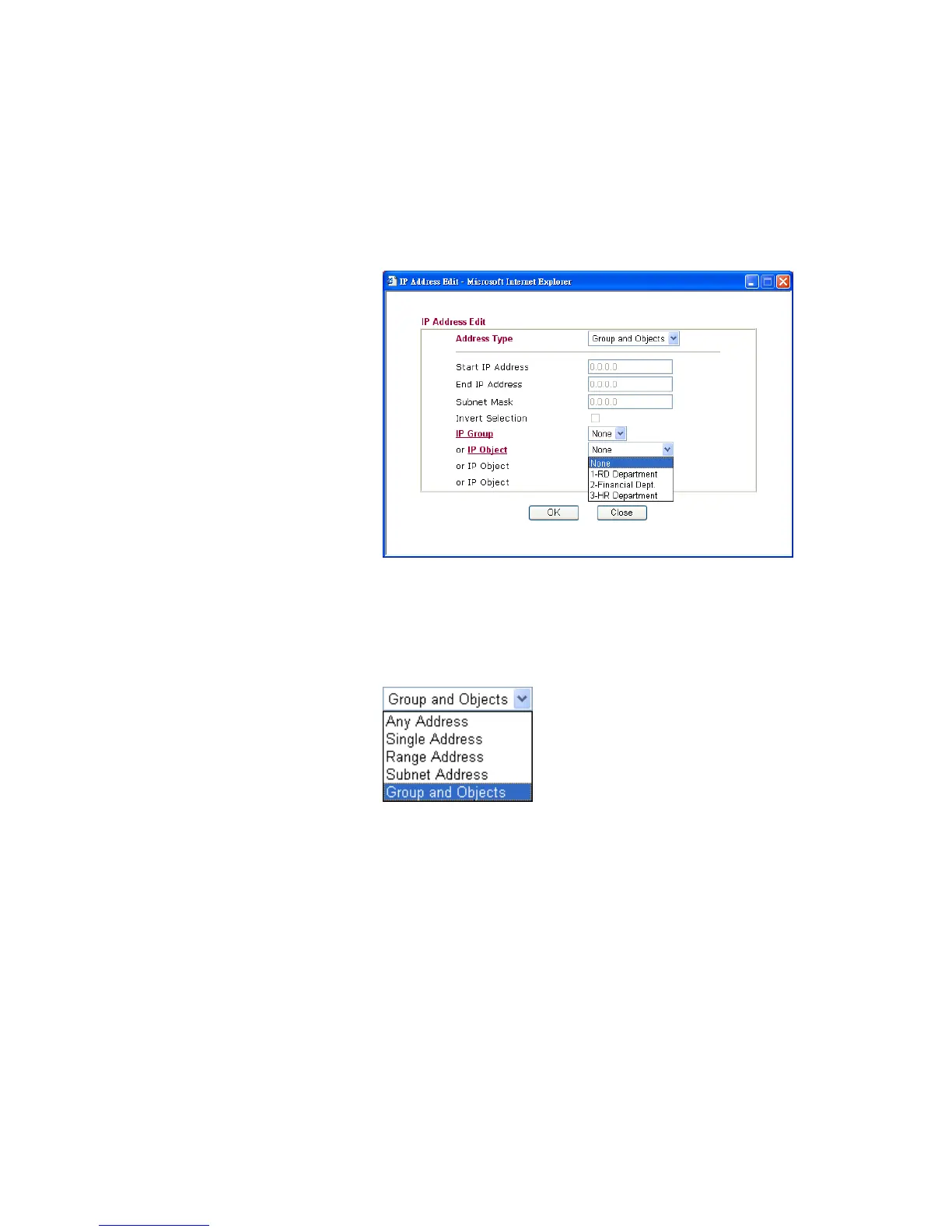 Source/Destination IP Click Edit to access into the following dialog to choose the