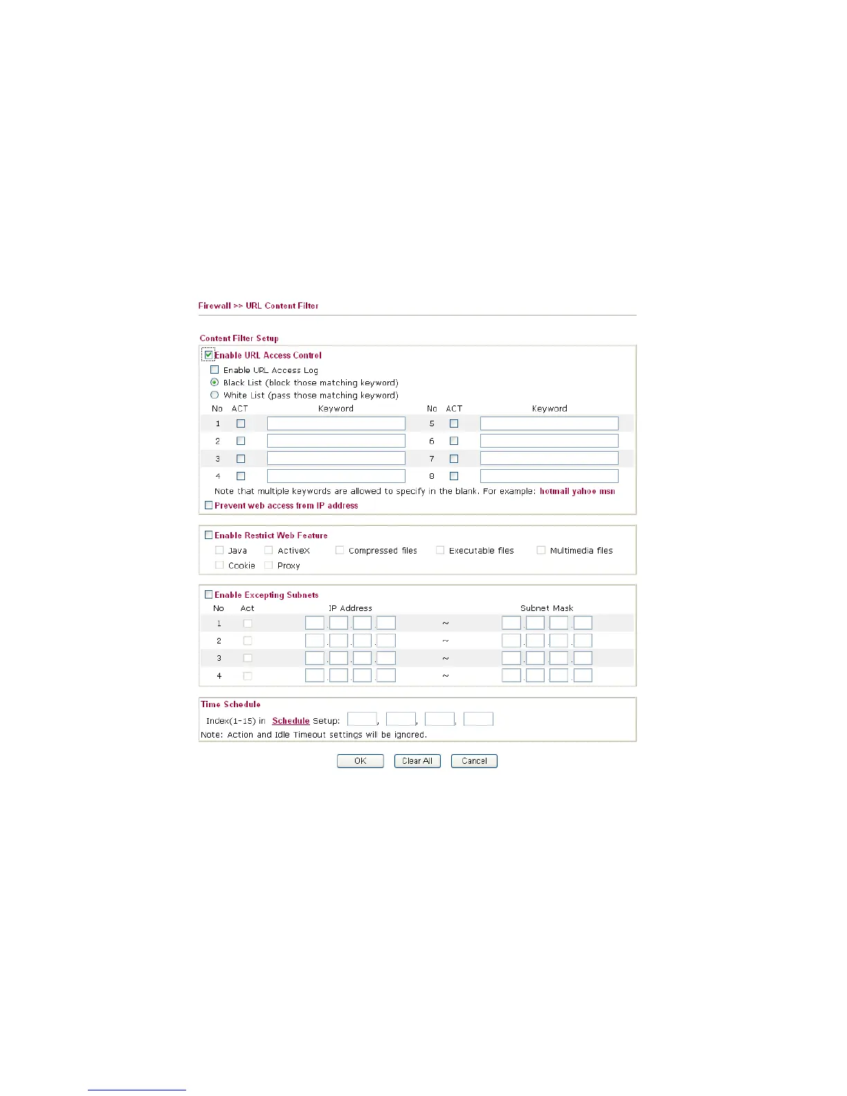full or partial matched with a keyword, the Vigor router will block the associated HTTP