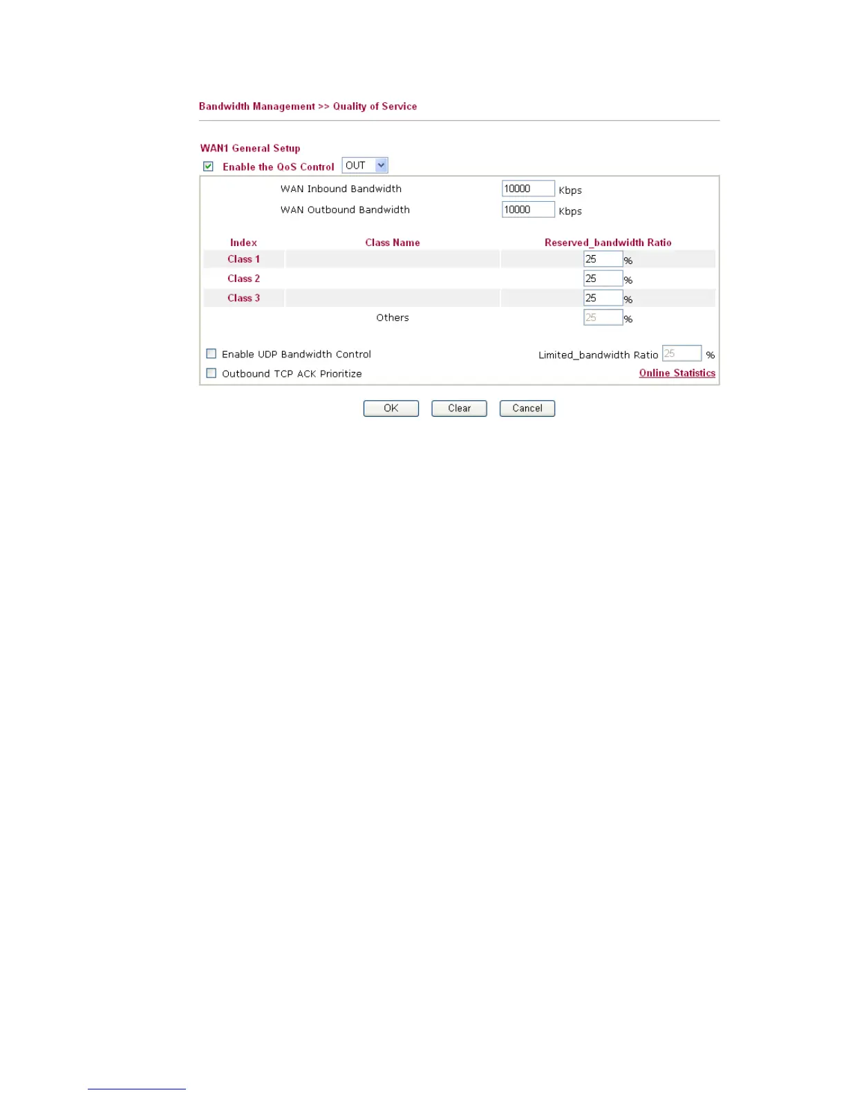 WAN Inbound Bandwidth It allows you to set the connecting rate of data input for WAN.