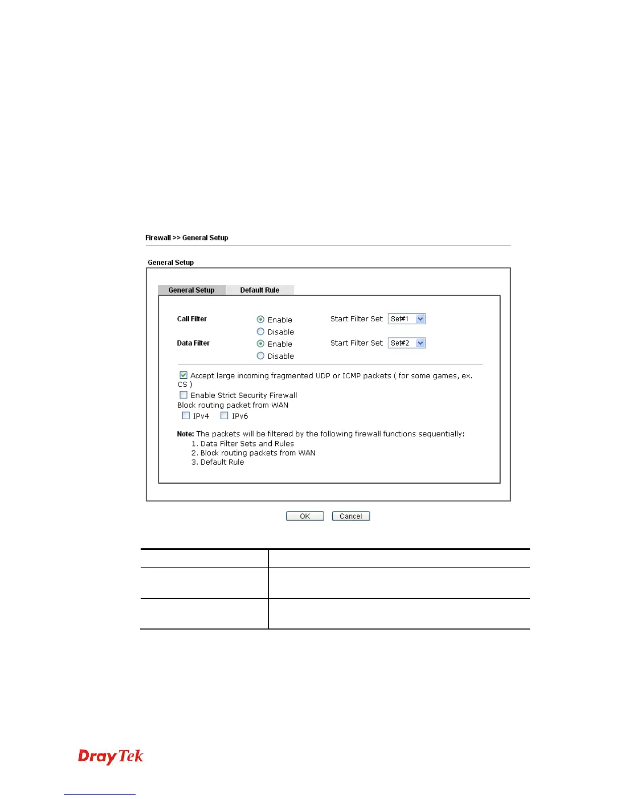 Click Firewall and click General Setup to open the general setup page.