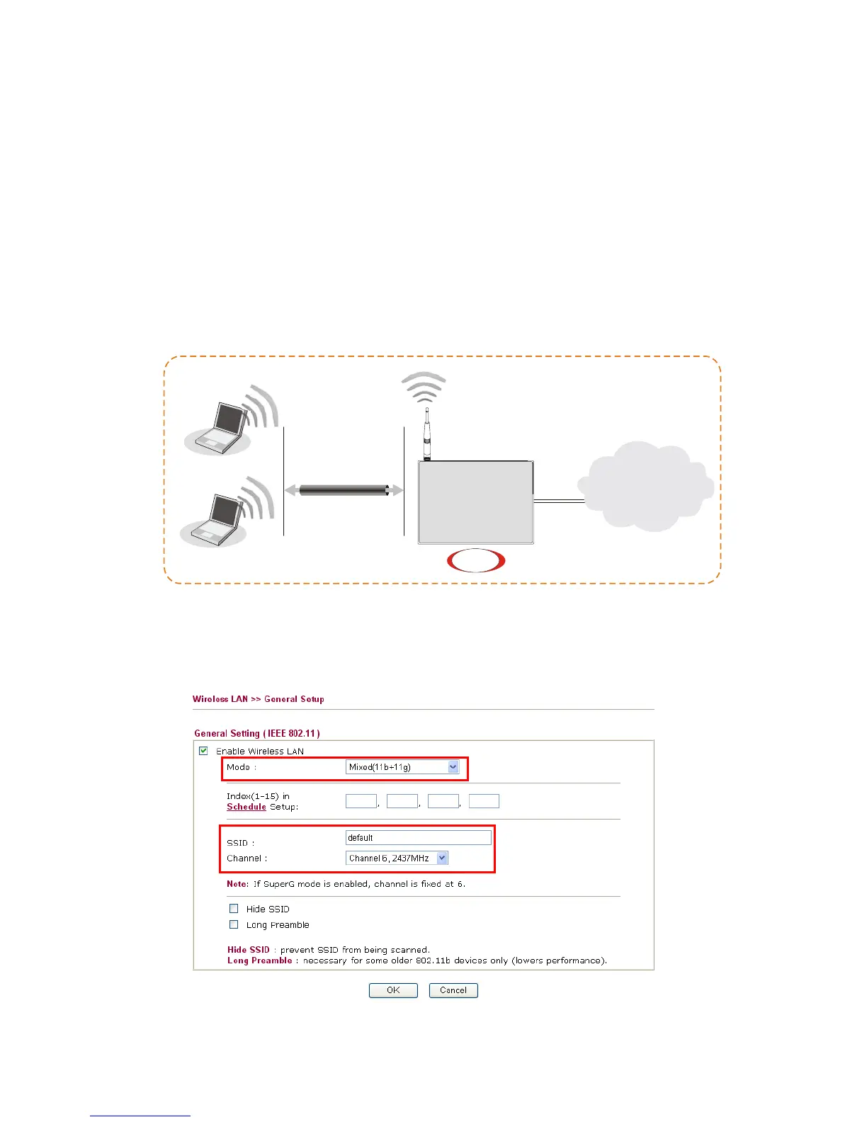 In an Infrastructure Mode of wireless network, Vigor wireless router plays a role as an
