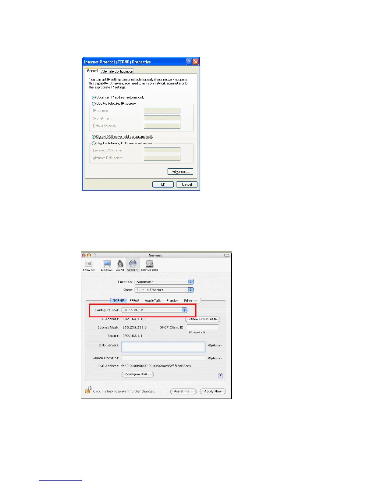 4. Select Obtain an IP address automatically and Obtain DNS server address
