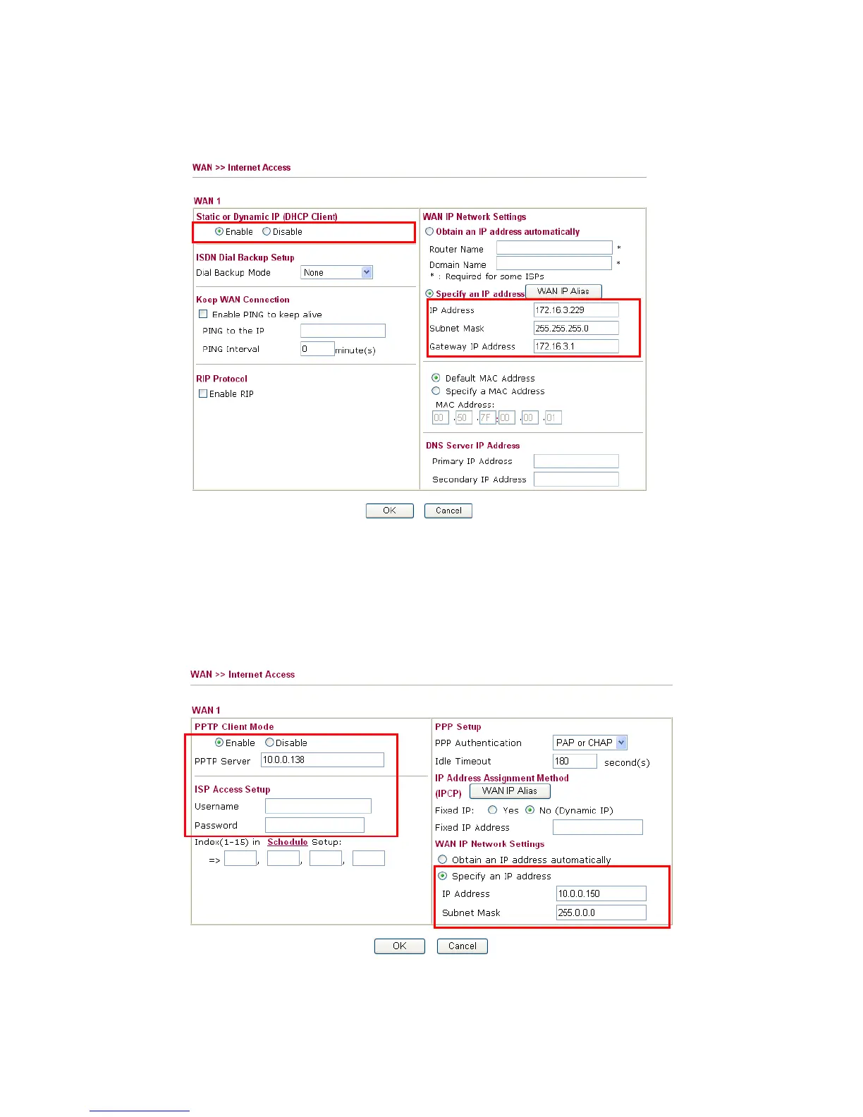 2. Check if PPTP Server, Username, Password and WAN IP address are set