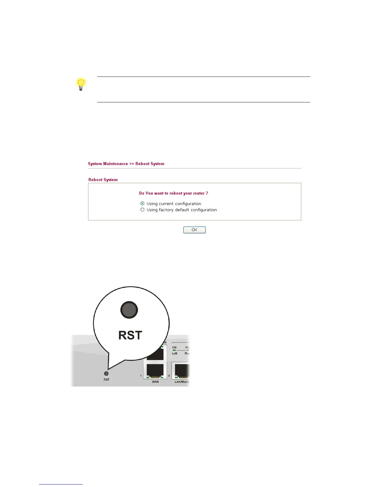 Go to System Maintenance and choose Reboot System on the web page. The following