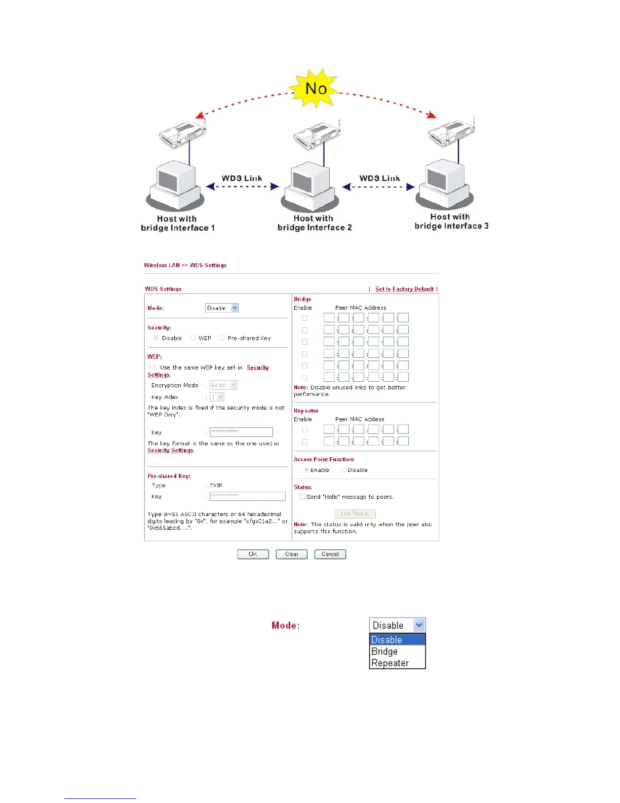 invoke any WDS setting. Bridge mode is designed to fulfill