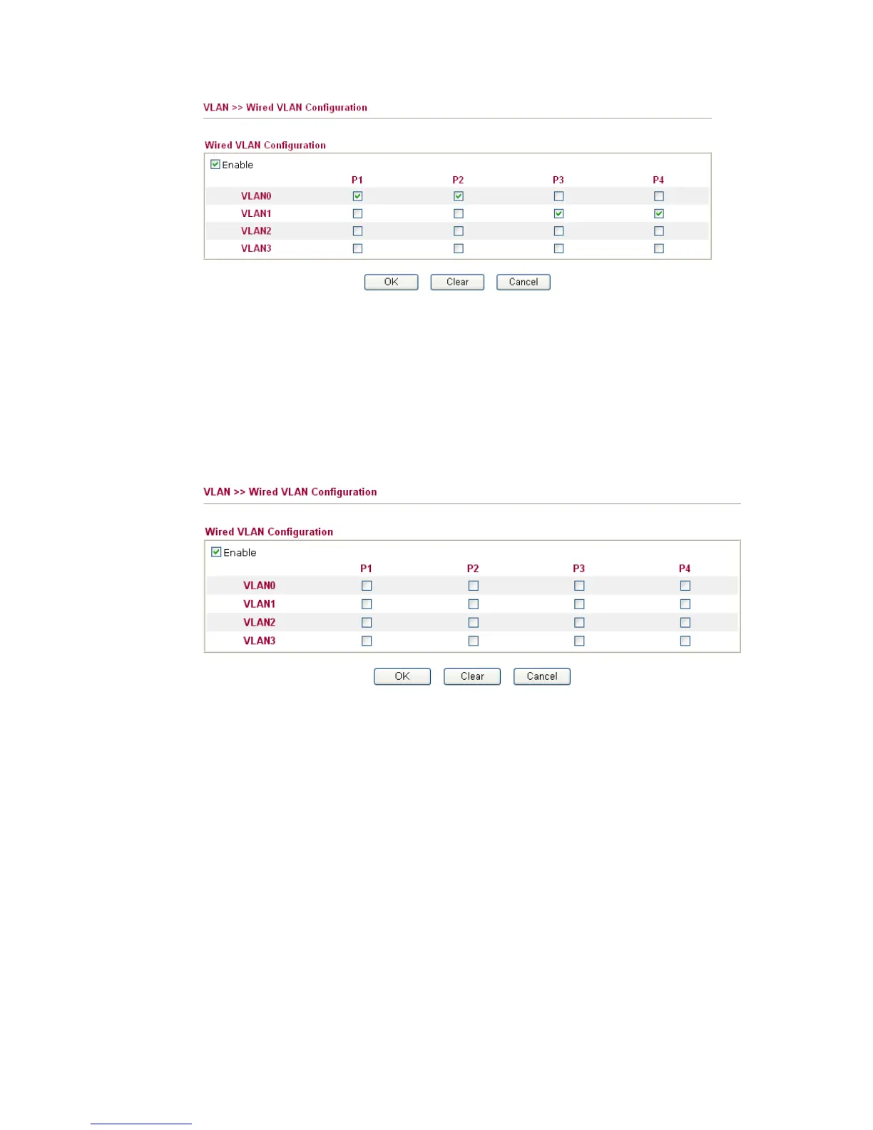 VLAN0-3 This router allows you to set 4 groups of virtual LAN.