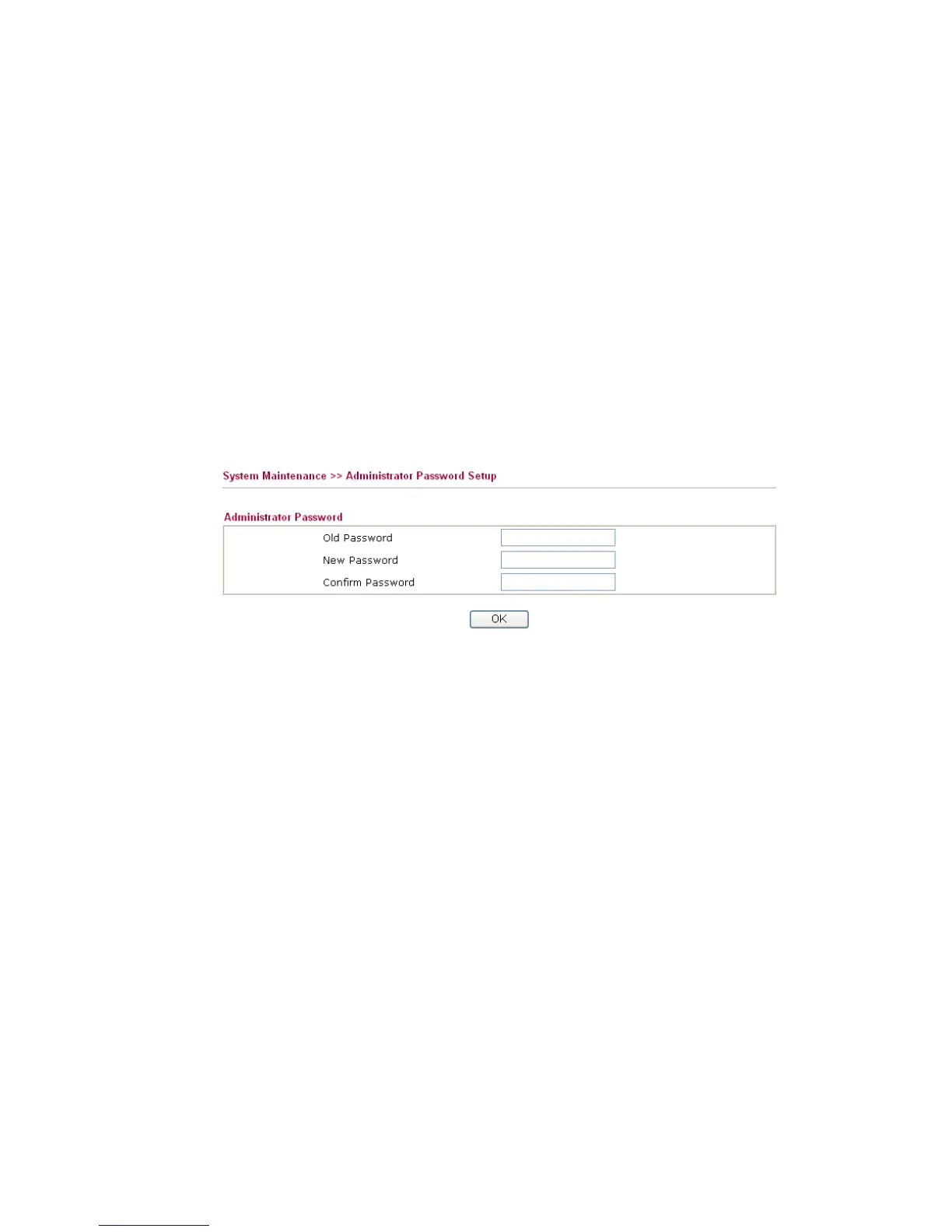 Old Password Type in the old password. The factory default setting for