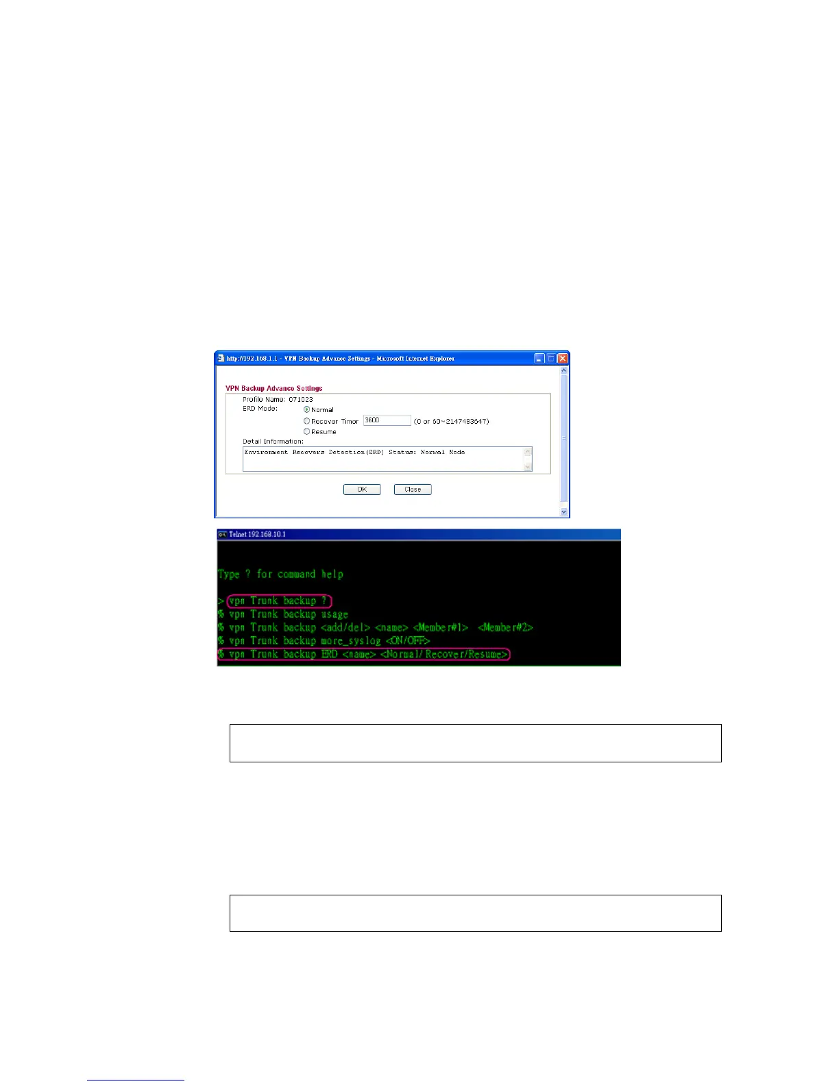 4. For using ERD mechanism, please type “vpn Trunk backup?”. The available commands