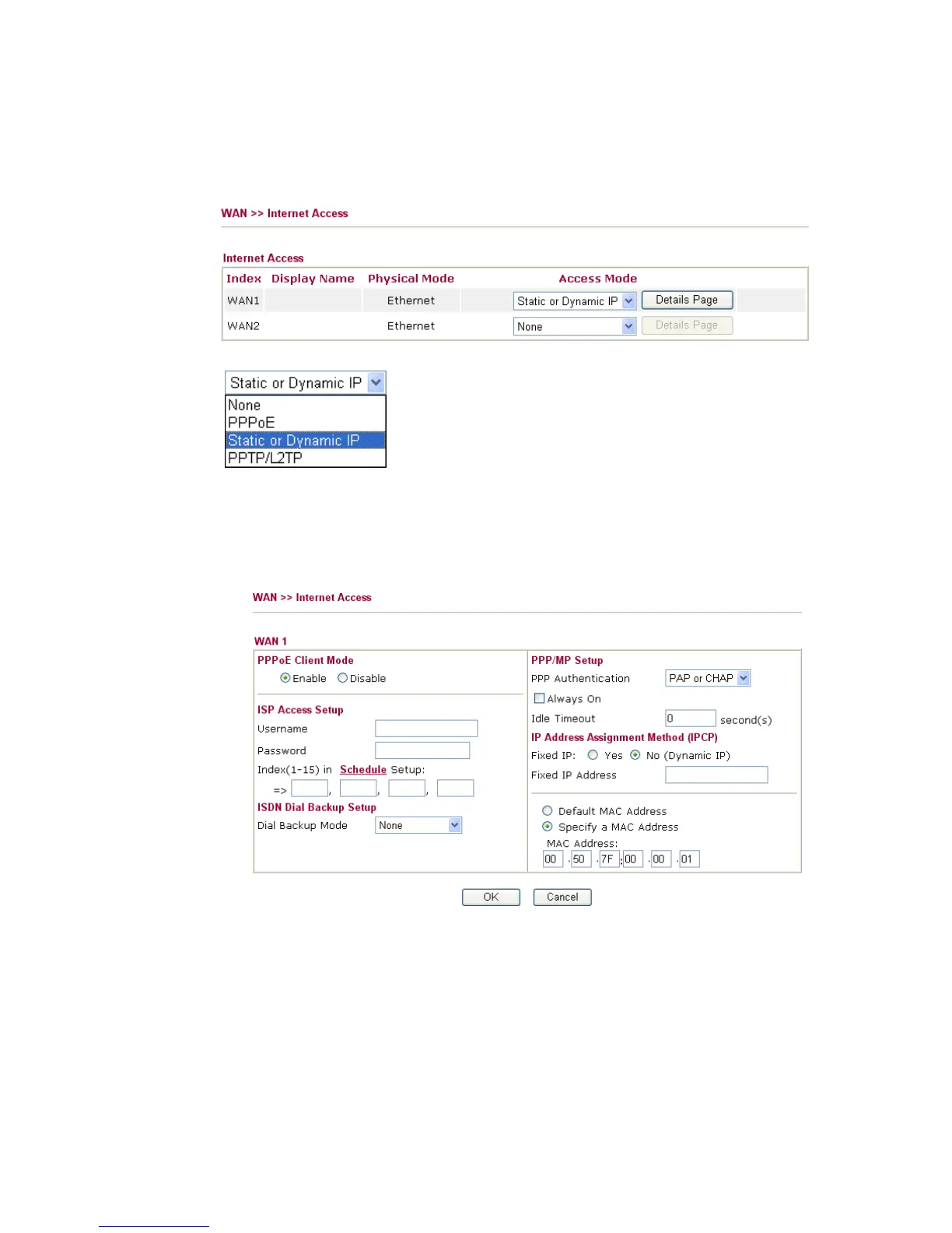 Click Details Page of WAN1/WAN2 to review the settings that you configured previously.