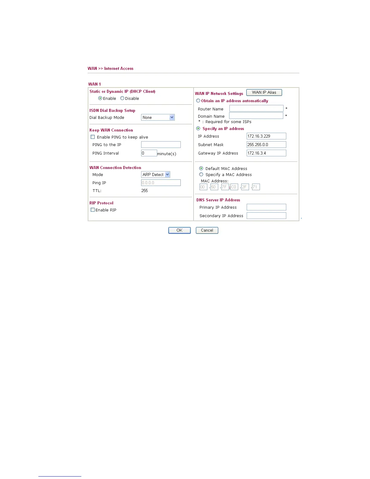 Internet Access from WAN menu. Then, select Static or Dynamic IP mode for WAN2.