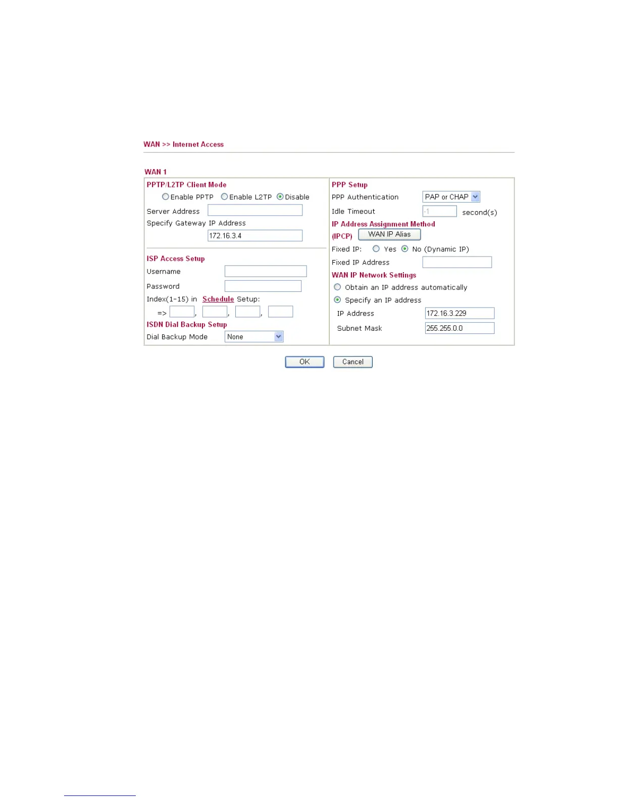 from WAN menu. Then, select PPTP/L2TP mode for WAN2/WAN2. The following web