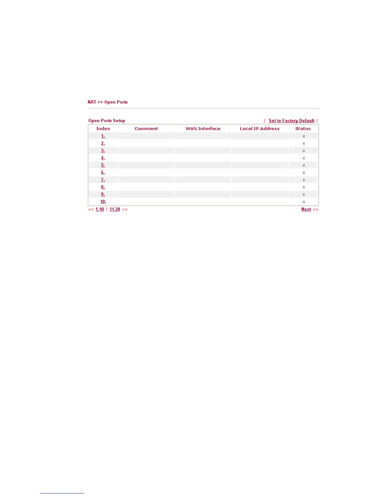 will pop up. In each index entry, you can specify 10 port ranges for diverse services.