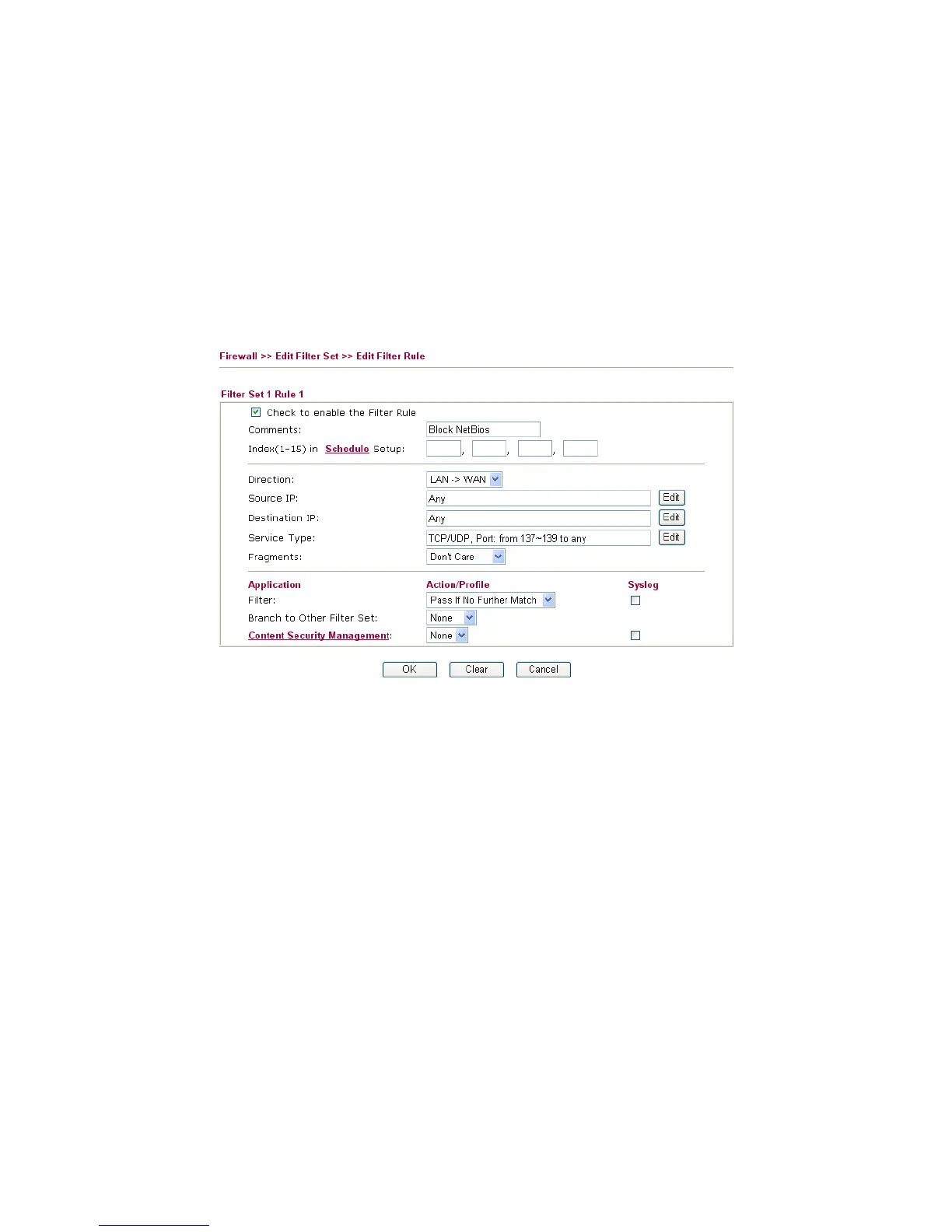 Comment Enter filter set comments/description. Maximum length is