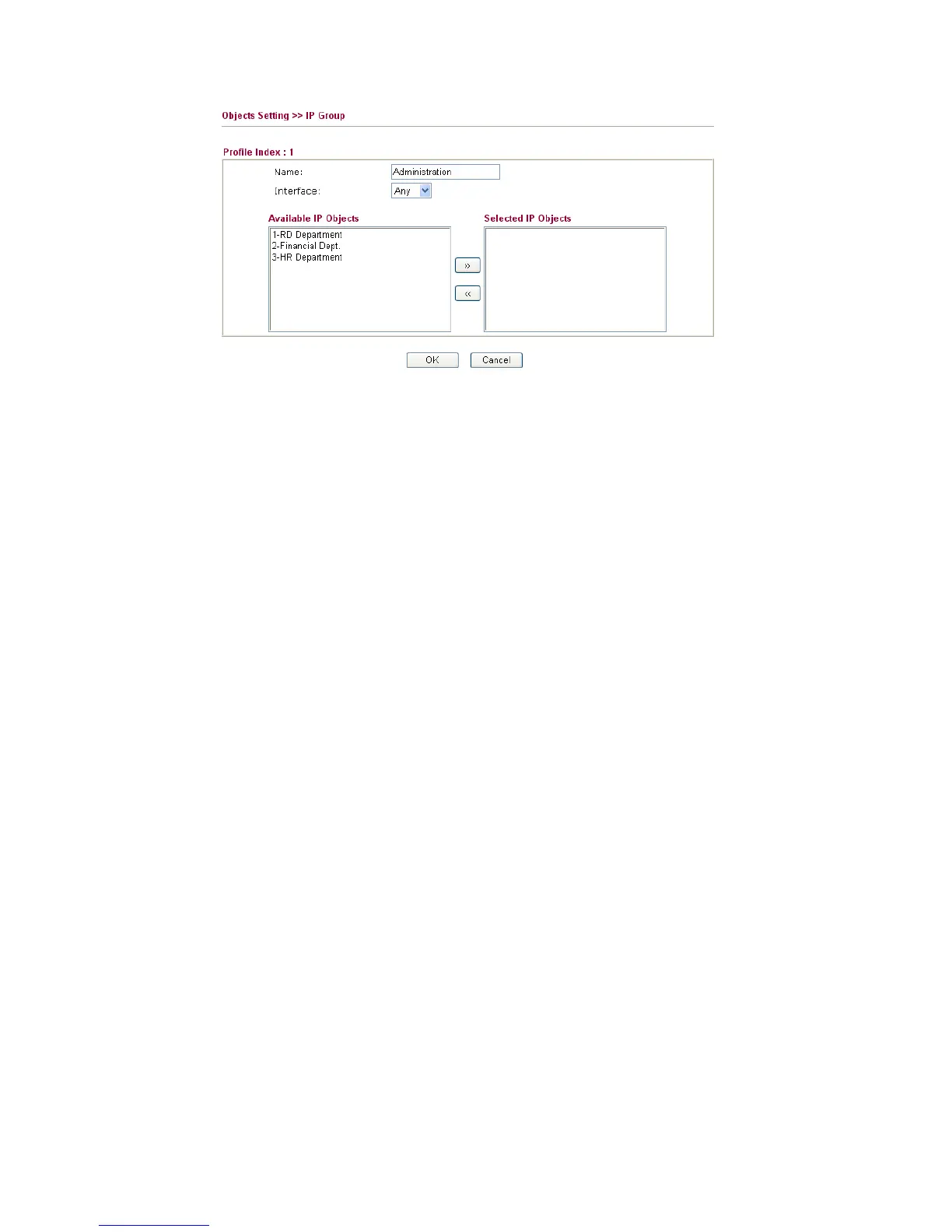 Selected IP Objects Click >> button to add the selected IP objects in this box.