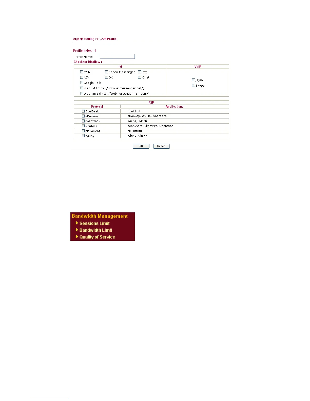There are several items for IM, VoIP, P2P provided here for you to choose to disallow