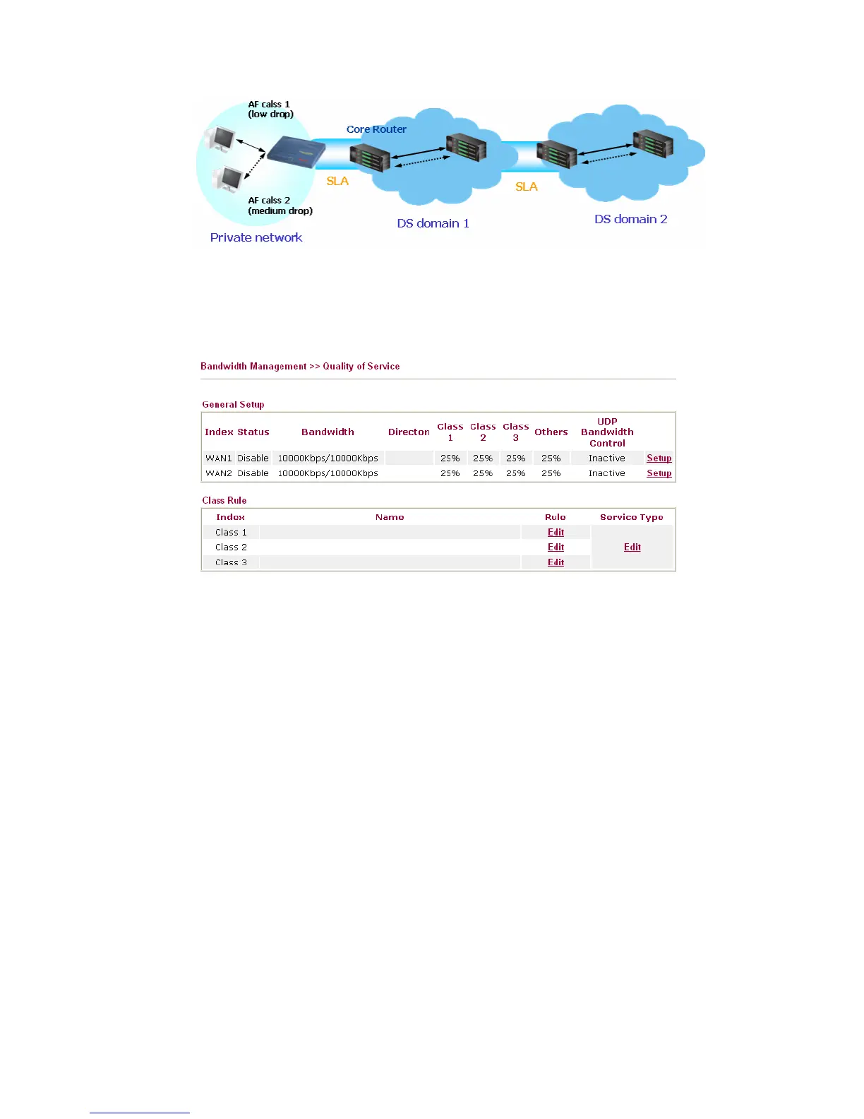 You can configure general setup for the WAN interface, edit the Class Rule, and edit the