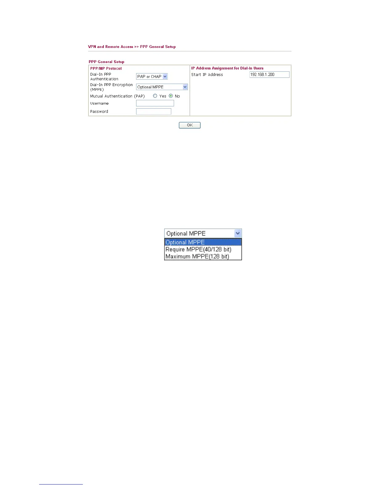 Start IP Address Enter a start IP address for the dial-in PPP connection. You