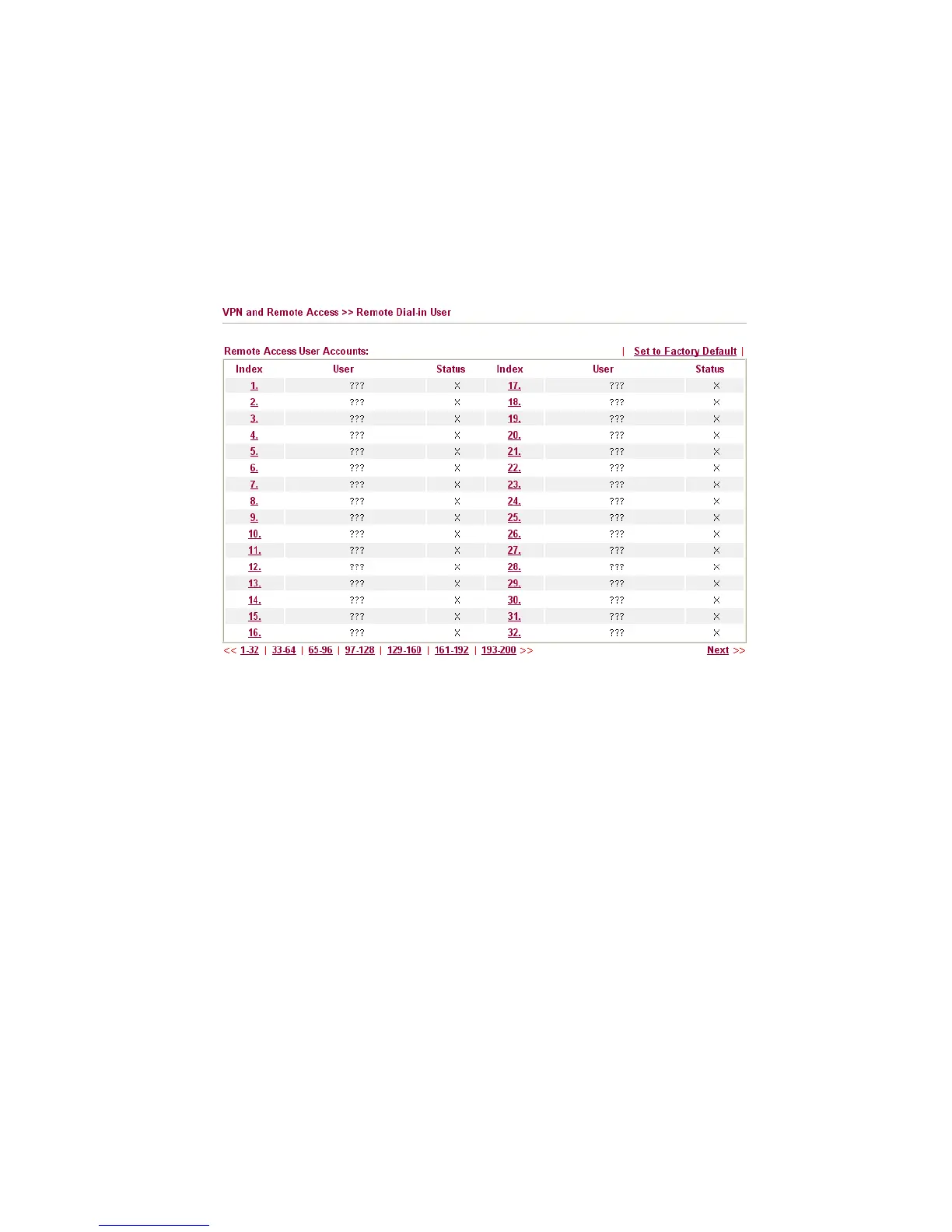 Click each index to edit one remote user profile. Each Dial-In Type requires you to fill the