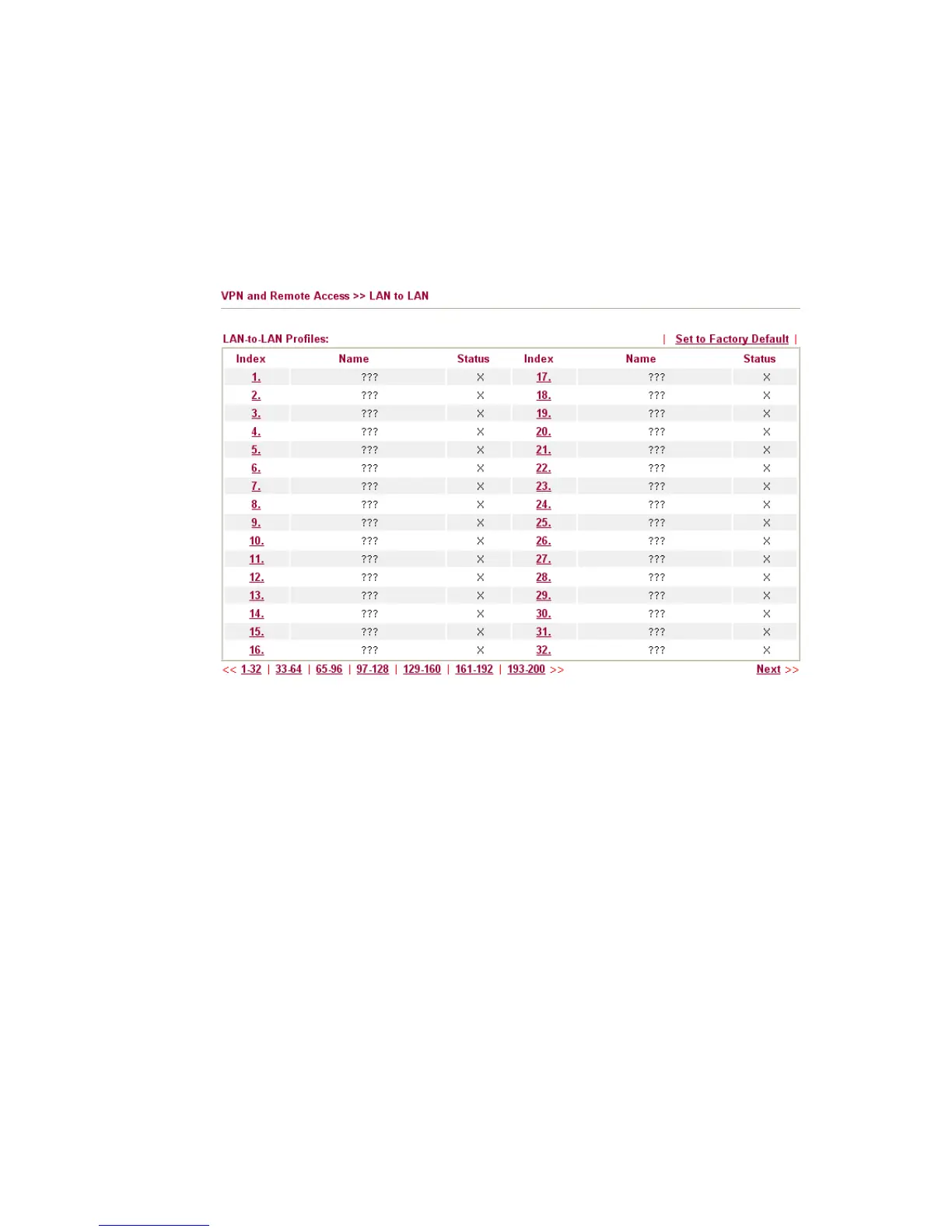 Click each index to edit each profile and you will get the following page. Each LAN-to-LAN