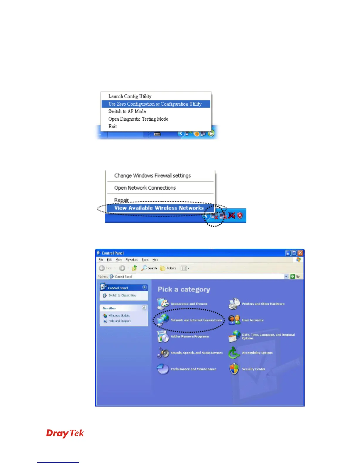 1. Right click VigorN65 configuration utility icon and select Use Zero Configuration.