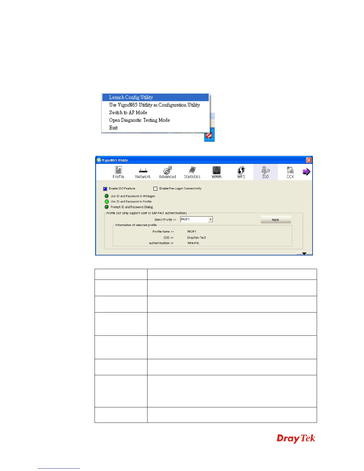 Profile List Select Profile: Select a profile containing LEAP or EAP-Fast