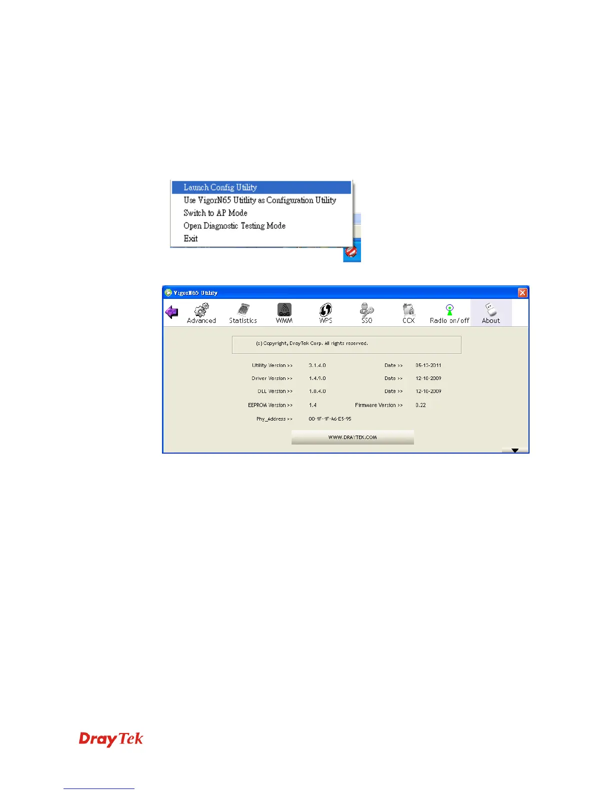 1. Right-click VigorN65 configuration utility icon located at lower-right corner of computer
