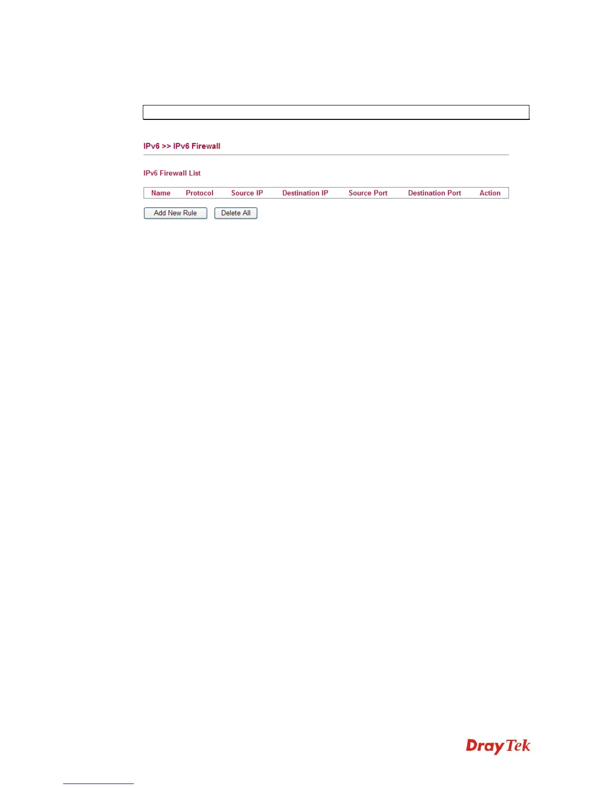 This page allows users to set firewall for the packets transferred via the protocol of IPv6.