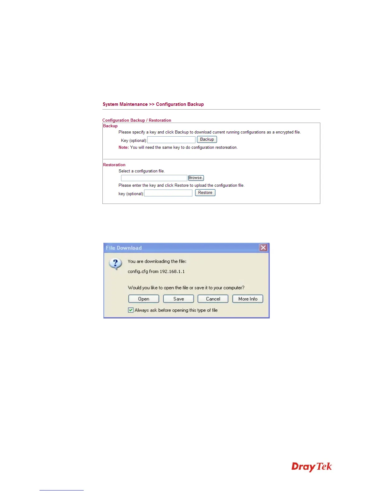 1. Go to System Maintenance >> Configuration Backup. The following windows will be