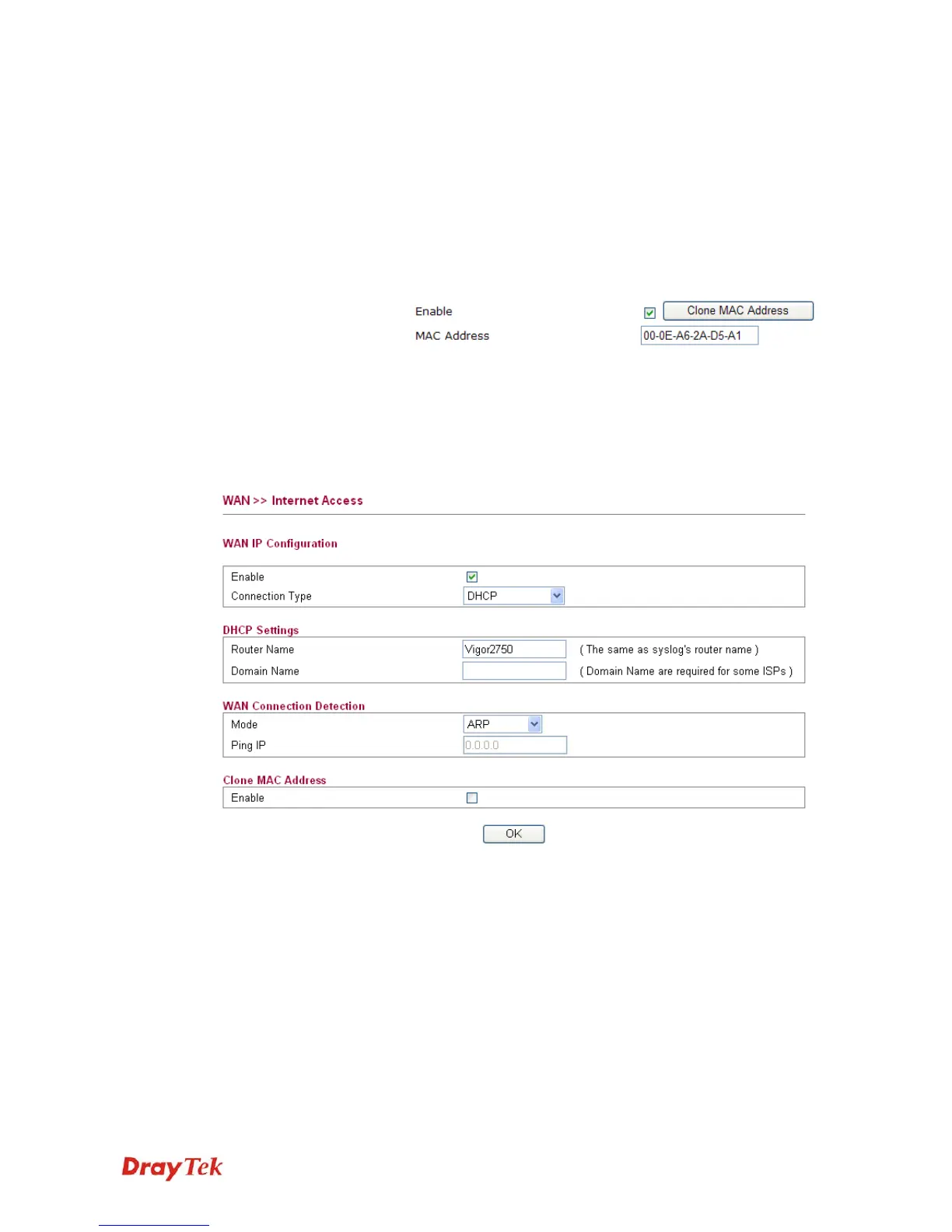 Clone MAC Address It is available when the box of Enable is checked. Click Clone