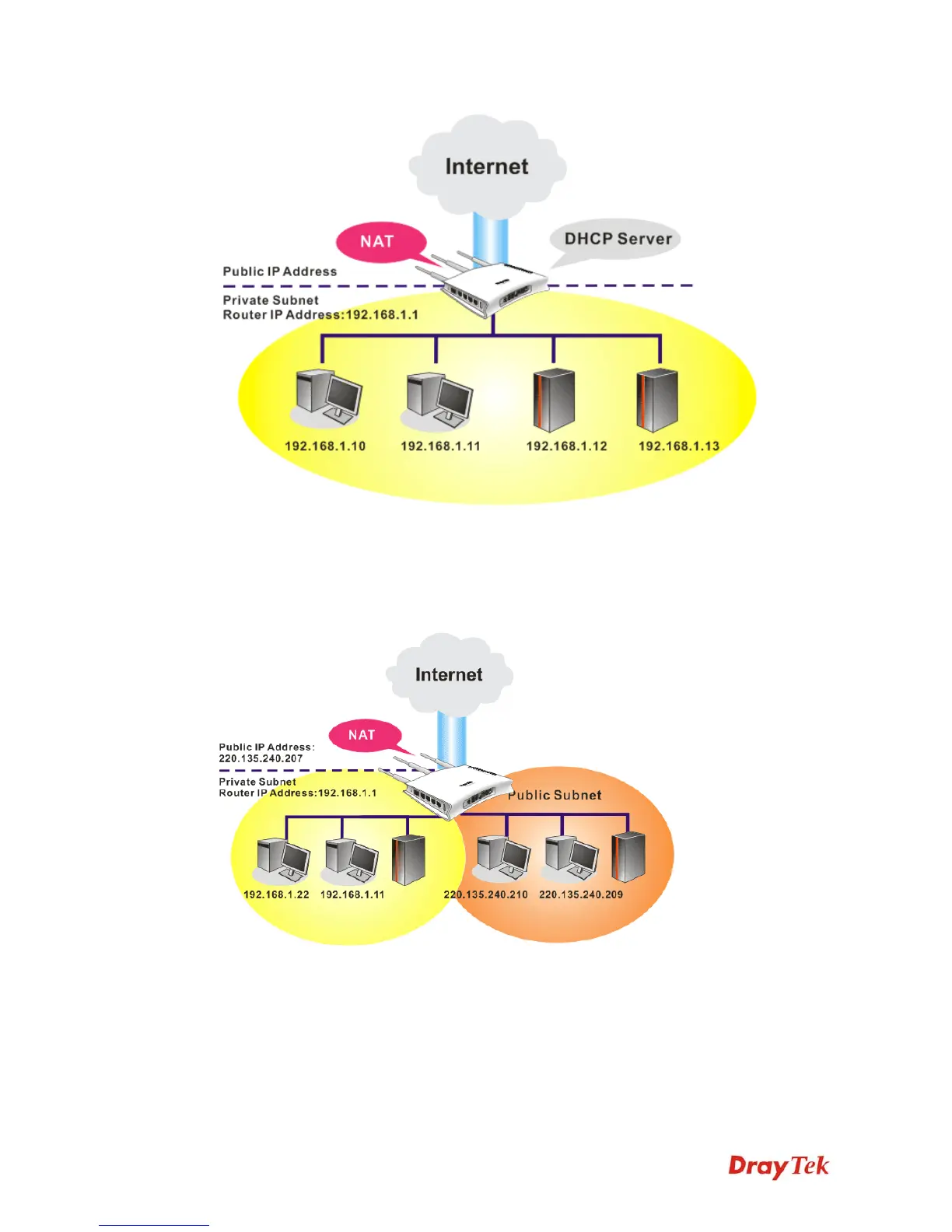 each host is equipped with a public IP address. As a part of the public subnet, the Vigor router
