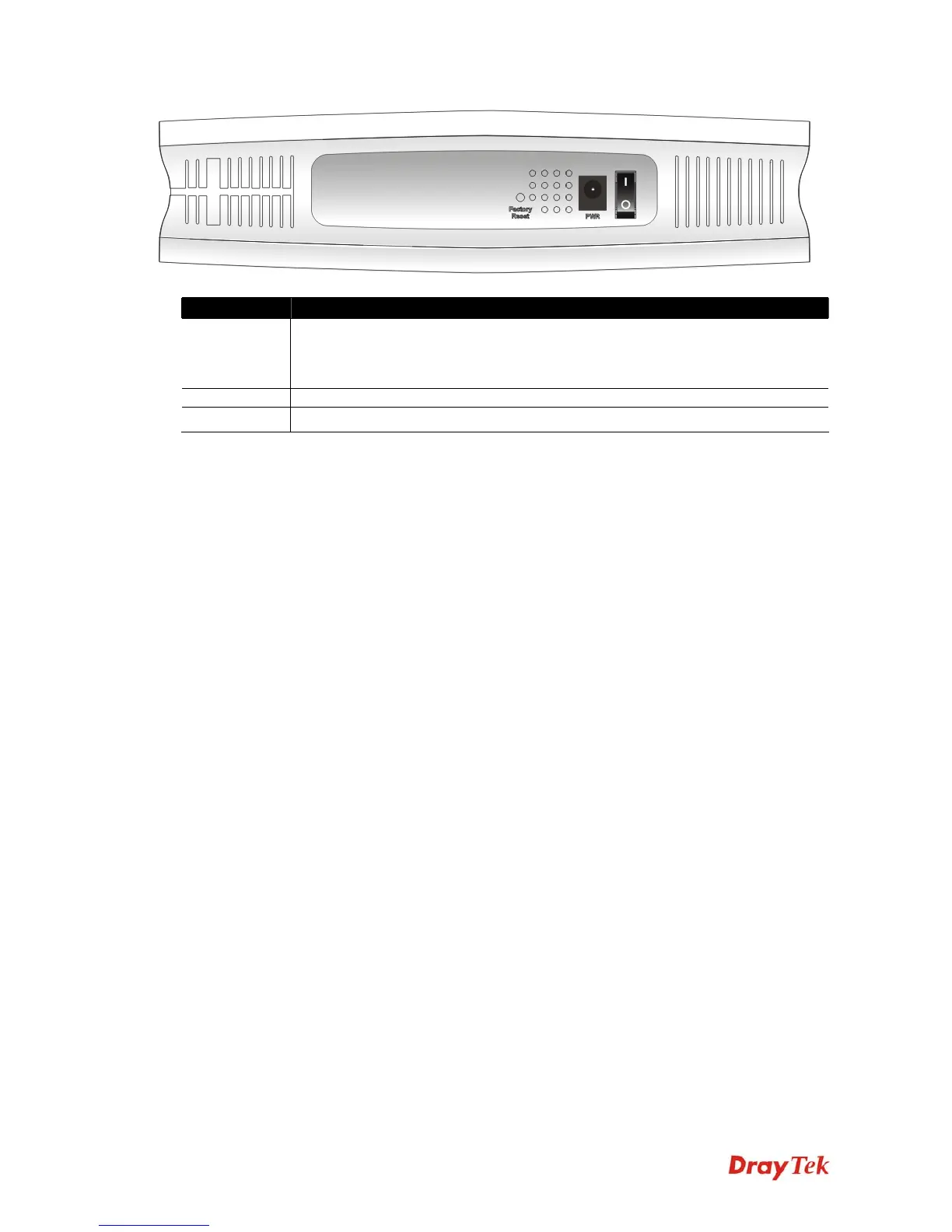Factory Reset Restore the default settings. Usage: Turn on the router (ACT LED is blinking). Press