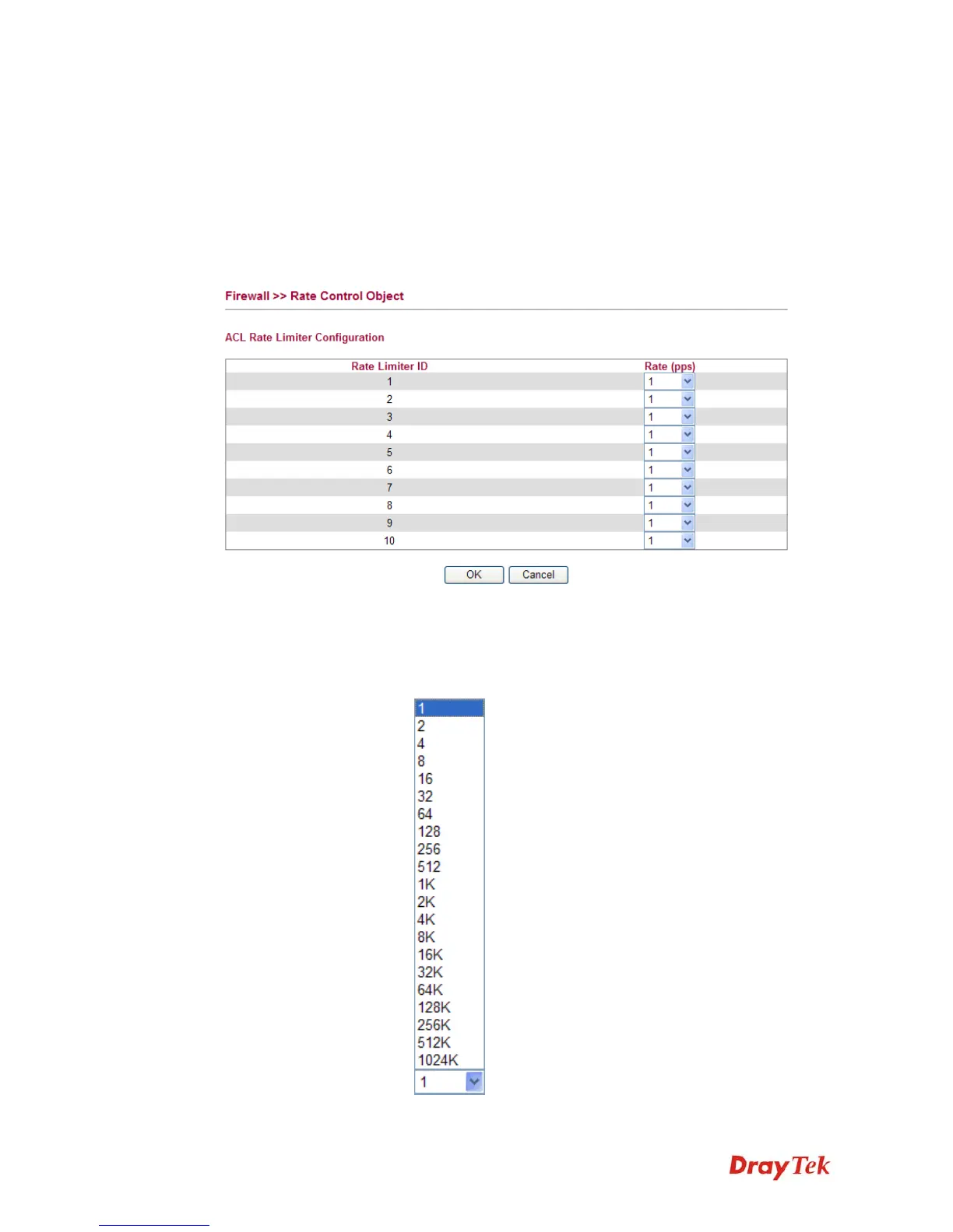 Configure the rate limiter for the ACL (Access Control List) of the router. Please click Rate