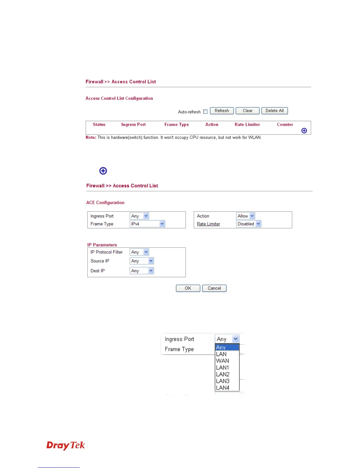 ACE Configuration Ingress Port – define which port the packet coming from. The