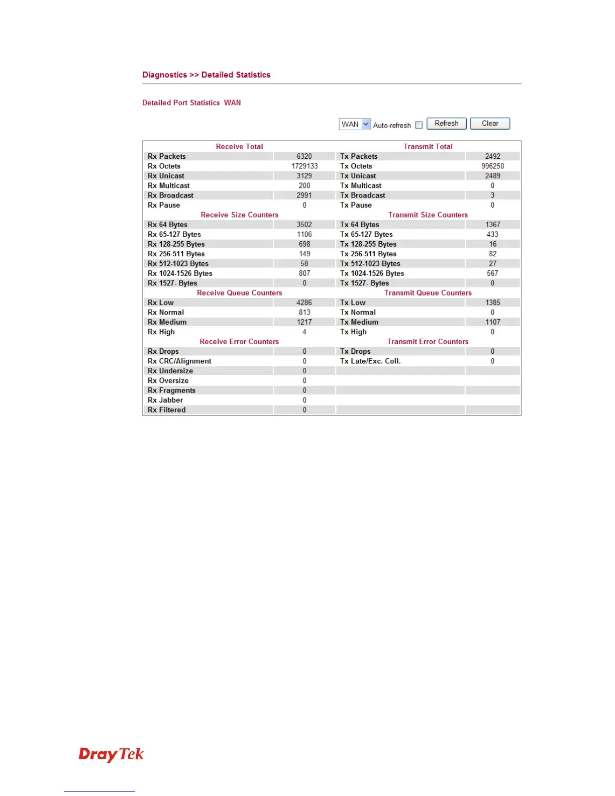 RX 128-255 Bytes Display the number of 128 ~ 255-byte frames in good and bad