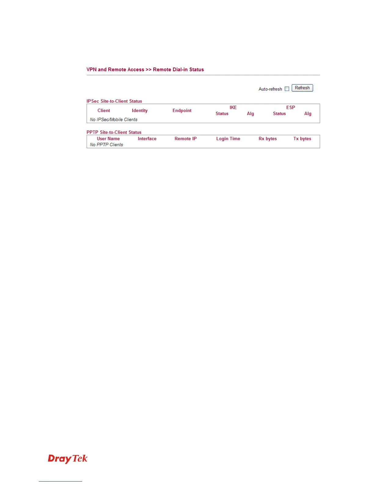 ESP Status Display the status of the phase 2 IPSec ESP key exchange.
